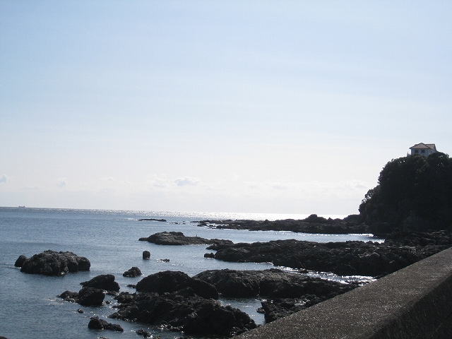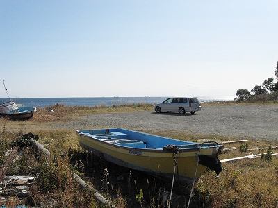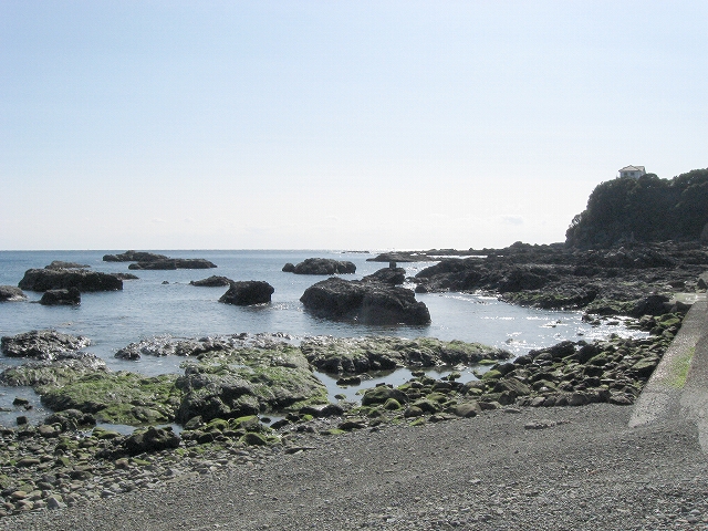近くに店があるので、そうだお昼だから何か買おうと行くと、釣具店で目当てが外れる。食べ物は置いてないよなと窺うと、なんと弁当やおにぎりを置いていた。「そっか。紀南ではこういう形態があるんだ。」 ふつうはなかなか考えられない。こんな隔絶された半島においてはコンビニはないが、釣具店ならあり、弁当を置けば釣り客が買い、また一般の人にとってのコンビニともなるらしいようなのだった。だから釣具屋とはっきりわからなくなしてあったようだ。が、しかし昆虫のエサともに置いてあるのに慣れず、玄関で後にし、海へ向かったのだが、ほどもなく主人がわざわざ道を渡って出てきて、「お客さん、国交省の人? 国交省の人ですか?」 と。 は、と思いつつも、いえ観光です、と、はっきり返すと、あ、観光ね。 と、いぶかしげに帰っていった。 一体何なんだ? やばいことでもやっているのかしら。いや待ち合わせだったのか、と、ひとたび固まって考えるが、ともかく私は今から国交省のGメンになったようだ。そんなふうに見えて、ちょっと得意である。毛の襟巻巻き直しながら、「実は、私はこの江角湾岸の野鳥の調査をしていましてね、貴殿の釣り具で追っ手になり、野鳥が減少しているかもしれないんですよ!」 それだったら環境省だろ、と自らをいなし、微笑みつつ首を傾ぶく。単に何らかの文句、要望を出したかっただけかもしれないな。