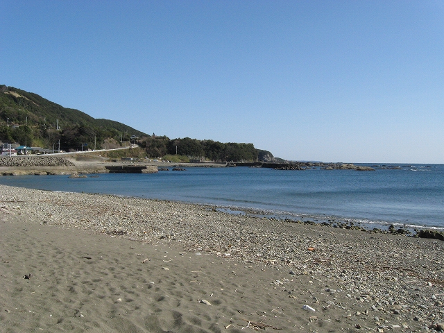 近くに小さいながらも浜はあったので出てみた。観光だからさ。海水浴するのは地元の人くらいな感じで、ささやかな浜だった。すこし小礫が多いようだ。