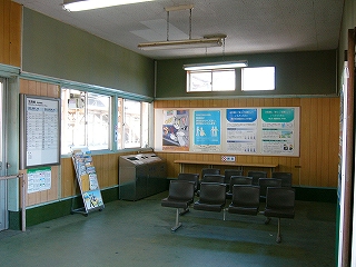 待合室内。L字型の椅子が変わっている。