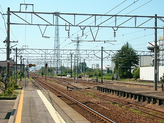 高岡から一駅離れたここは嘘のように誰もいない。時代遅れの工場や貨物場、そういう風景につき添われてホームを歩くと、自分の足音だけが聞こえてくるのだった。民家が押し合っている方のホームでは、草がコンクリートを破壊していた。