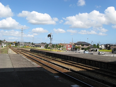 下車疲れしたので、信号操作盤のあった駅舎の凸部の近くにある椅子に腰かけた。重い鞄を下ろすのは至福のときだった。日を経るごとに鞄は重くなる。服がかさばりはじめるから…。寝袋も重くなっている。ふと「よく新潟まで行ったよなあ」。もうほとんど忘れていた。