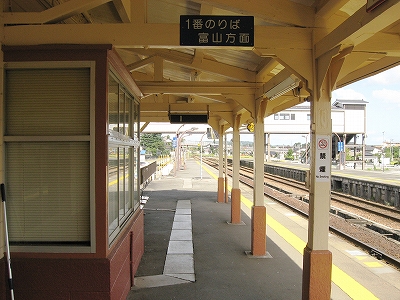 けれど構内はつまらなかった。しかしそのつまらなさはちょうどよかった。このしまりのない感じは昔と変わらなさそうだ。駅舎がいまどき珍しい、大ぶりの函形木造で、中も純粋な明治風で、品のよいものだった。作り直した懐古趣味ほど下品なものはない。こんな時代のは駅前が狭いのに、異様に広く、当時からおわらのことを考えていてたのかと思うほどだが、そんなことはないんだろう。