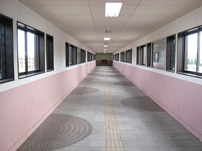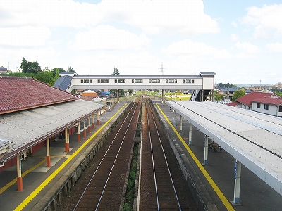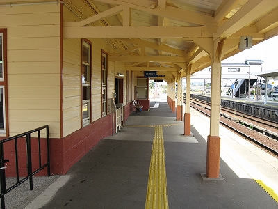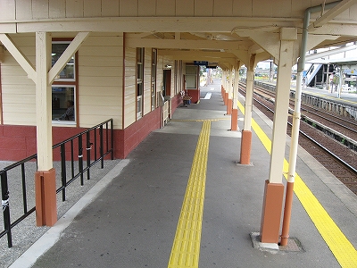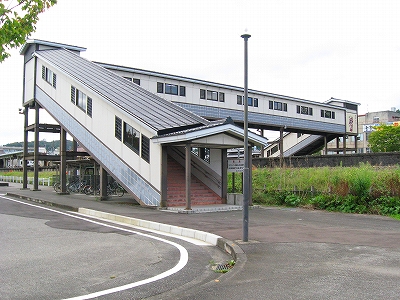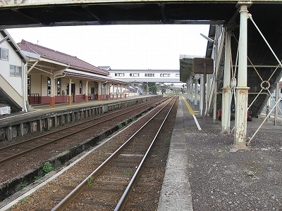 海側に城下町風の有蓋陸橋が表を繋いでいる。三線構造の余裕ある構内に悠々と跨っているのを見ると、結構賑やかな街が思い浮かんだ。ちょっとしたデパートがあり、自動車が行き交っているというような。しかし、微笑みつつ、