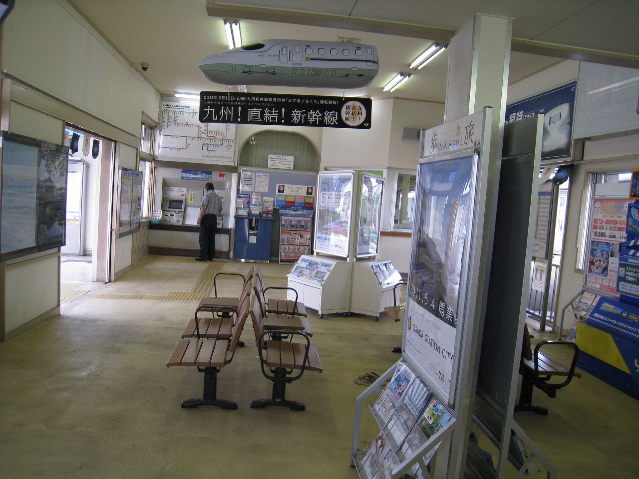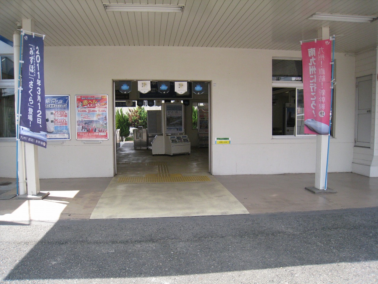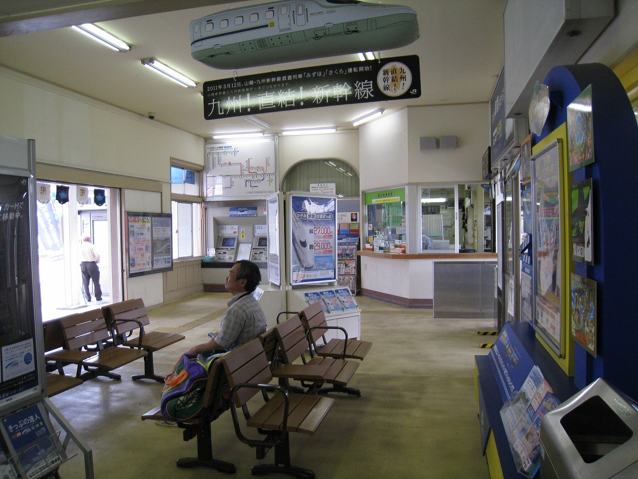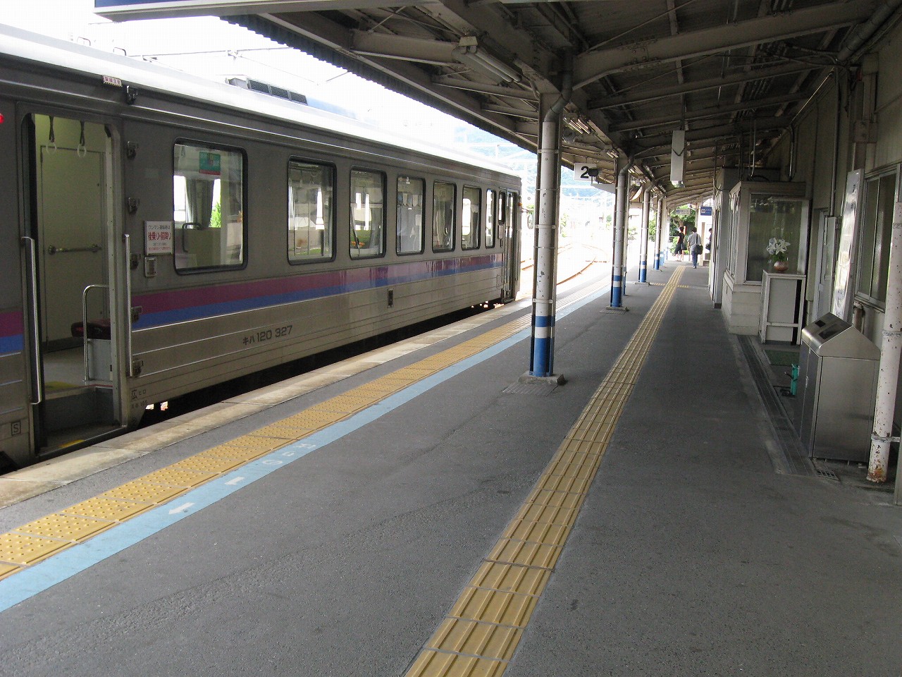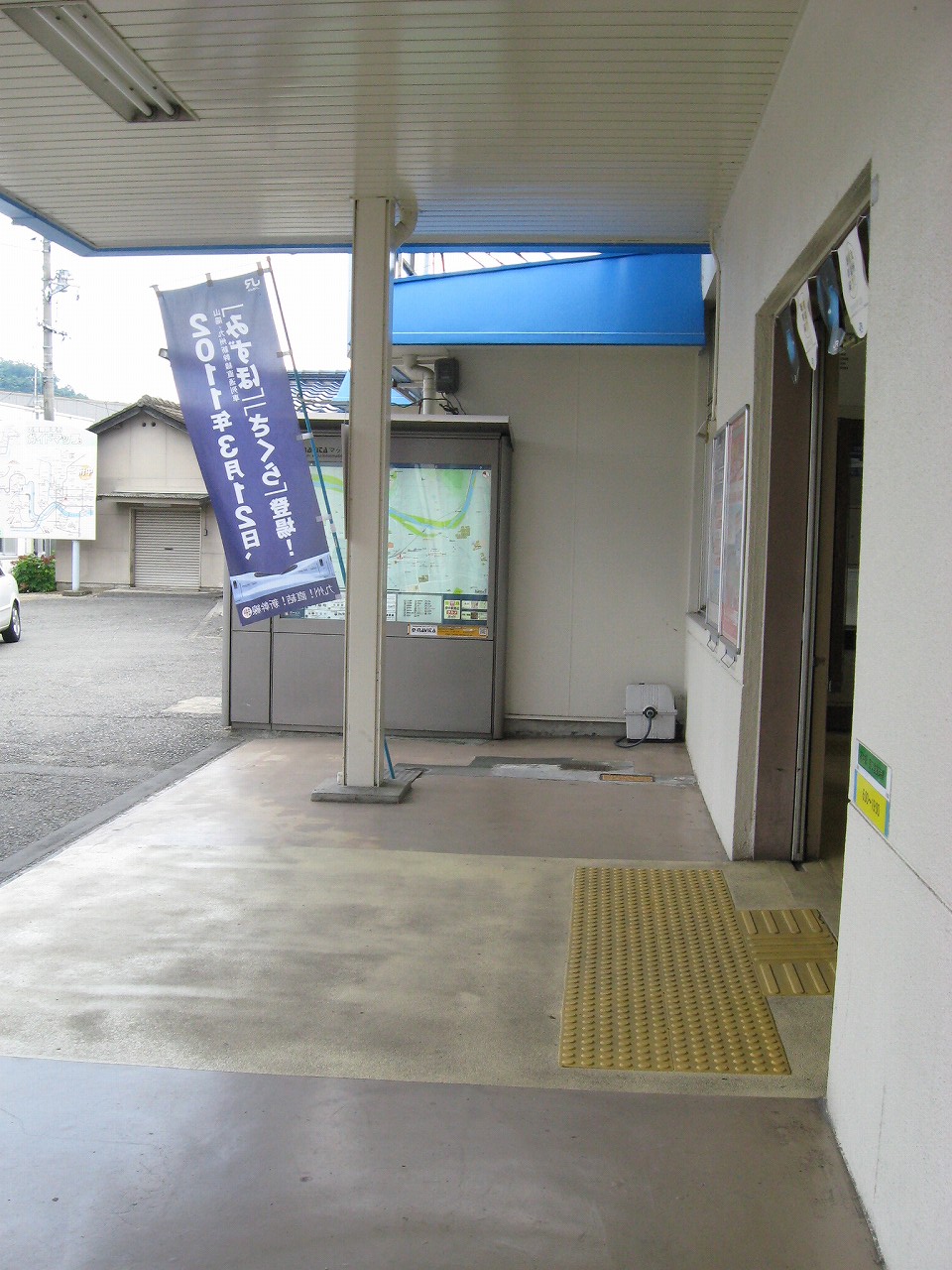 通常、駅舎前のこういう歩道部分は敷石にするんですが、ここはアスファルトにしてコスト削減してあります