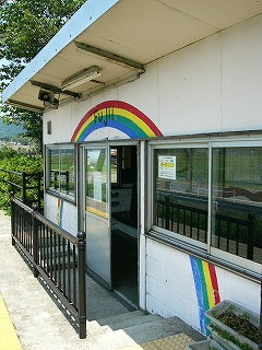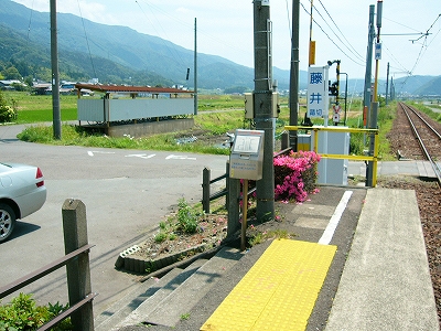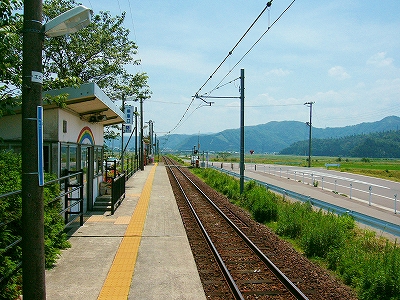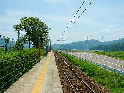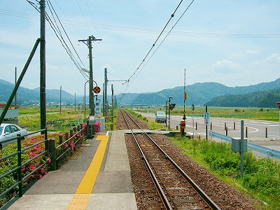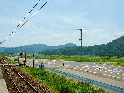 この駅に降りたとき、一人のお婆さんと一緒だったが、その人は列車がワンマンなものの後ろのドアから降りていった。運転士は、あれ…地元の人で年配の人だから降り方は知っているはずだが…という表情をしている。その人はホームの切符箱に投げ込んで、白昼の集落へと消えていった。後ろのドアの方がホームの出口に近かったし、いつものことで改札を受けるのが面倒になったのかもしれない。私は十村で買った切符を手渡した。ドアの前で待っていると、あ、横のボタン押してください、と運転士に言われた。