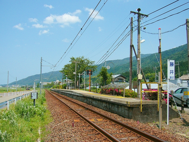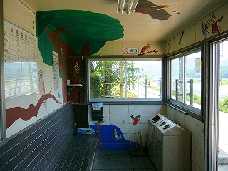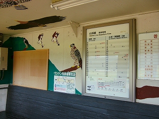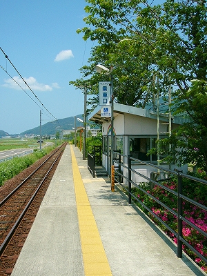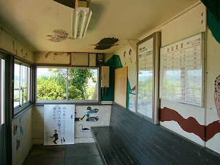 しかしこれだけ田圃ばかりなのは、やはり氾濫などがあったのだろう。藤井の集落をはじめ、たいていは山裾の少しだけ高いところに位置している。この駅に下車すると、その集落の一つに出合えるというわけだった。ホームと待合室だけで、ほかの駅と違うところがないという意識が地の人にもあるのか、待合所は虹や野鳥を描いていて、形そのものは無機質ながら、少し心が和んだ。