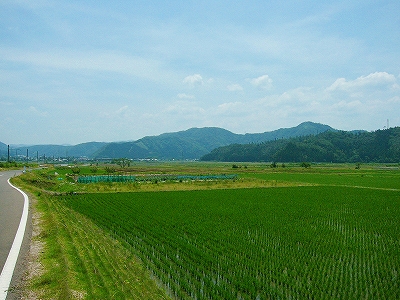 三方湖に面した平地ある三方から、山地に挟まれた田圃ばかりの沖積平野を十村まで詰めて行く途中に、後年になって駅ができたところで、何げない夏山の山容は、さっきの十村と変わらないものだったが、この猛暑さえなければ、ここは平野の広がりがたいへん気持ちよくて、それで山もいっそうすがすがしく見えた。沈降海岸の陰影が吹き飛ぶようだ。若狭にもこんなところがあったかと思わせる。