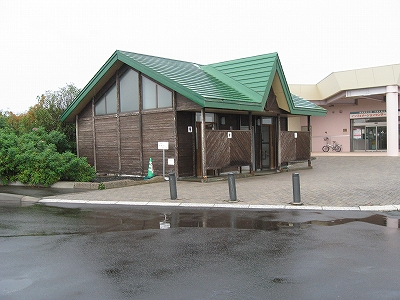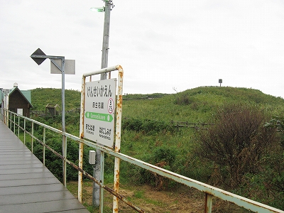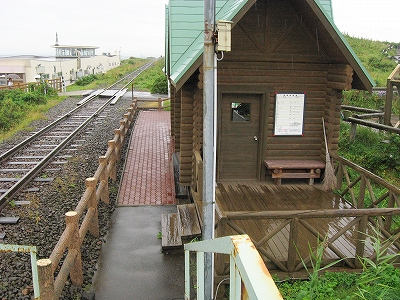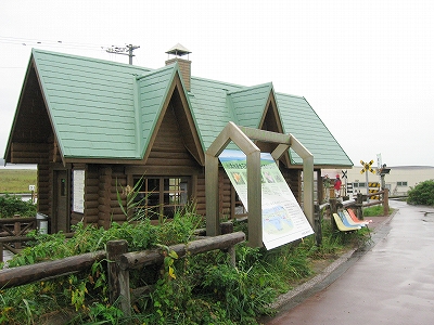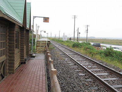 とりあえず雨脚をさけようと私も入ろうとすると、鍵がかかっていてびっくりする。そしてびっくりしたように、中の人がこちらを見る。中ではラジオが割と大きな音声でかかっていた。中をのぞいてやっと気づく。これはオレカなどの販売所なのだ。「なんと、雨を除ける施設もないとは!」。駅名からわかるように、季節駅でホームしかないのだが、傍らにログハウス風の建物があったのだった。