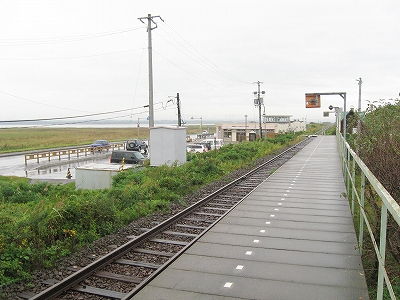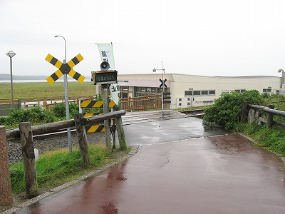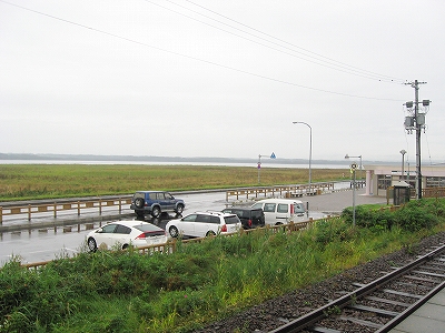 時刻になって、踏切が鳴り、原生花園なる原野から脱出する。