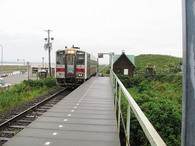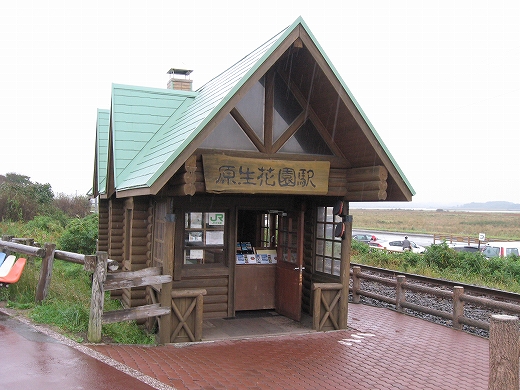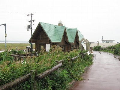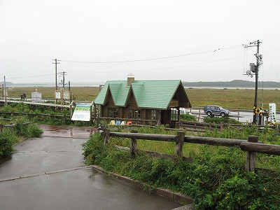 とりあえず予定通り原生花園で降りるが、かなり雨脚が強く、こんなときにこんなところに降りてえらい目に遭った。私と同時には、斜里から乗ったJRの職員がおり、その人と降りることになって、私はかなりに戸惑った。こんな駅で特別改札? その人は駅舎の中へと入っていった。
