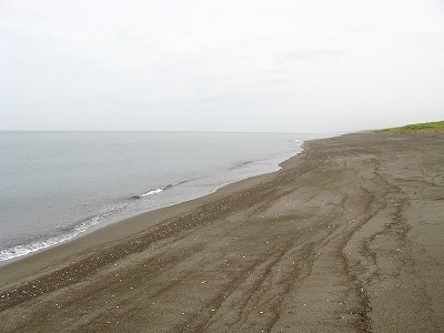 もうとにかく海岸まで出て、気を済ませよう。どうせ雨でなくとも花の季節じゃない。ほら、向うに何か道の駅か自治体がやってるみたいな土産売ってるところあるやろ、そこで飲み食いしてこの旅行の土産を地方発送しよう。