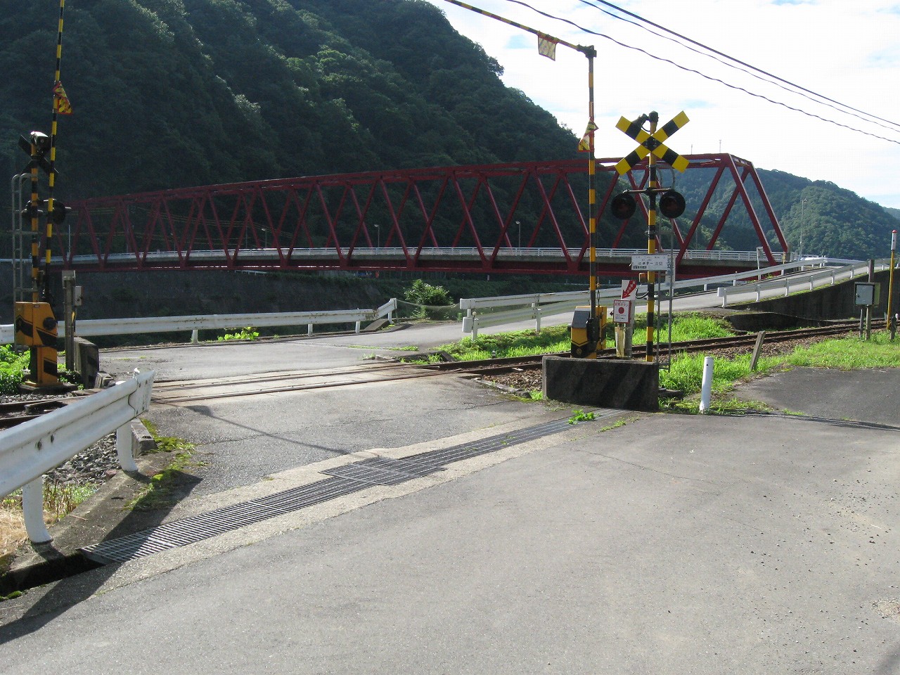 踏切にトラス橋と近代的設備が集まっています