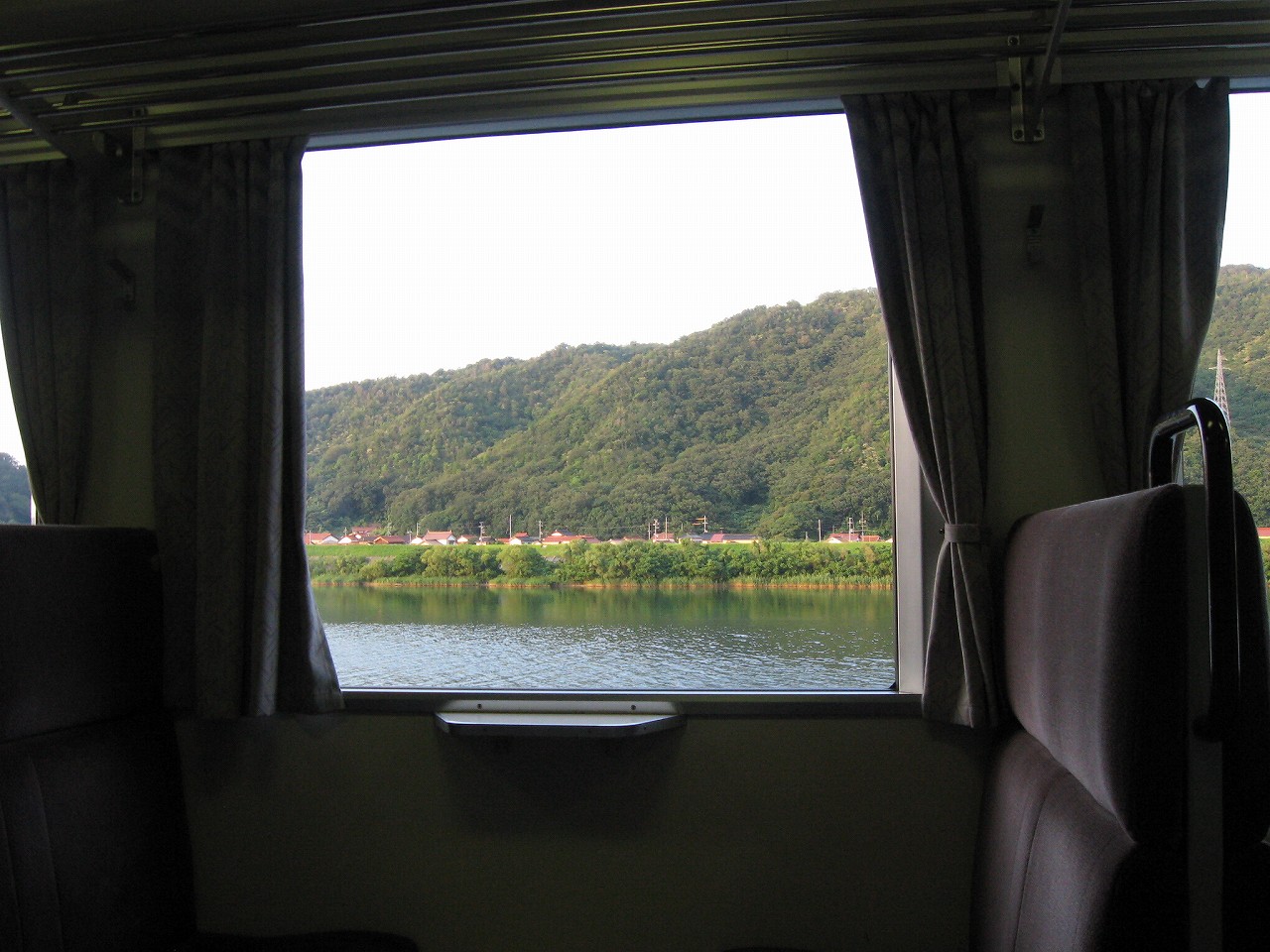 とにもかくにも、もう三江線からは脱出できるわけだ。足掛け四晩、尾関山、宇都井、沢谷、川戸、それぞれ駅寝して、今に至る。こんだけ味わったらもう十分。窓からは時間を変えてもう幾度となく眺めた江の川が、しなだれて映し出されていた。もう心象の江の川も、擦り切れている感じだ。というか、まるで学生として三江線を利用しているみたいだ。「ふるさとは 遠きにありて 思ふもの」か…、まっ、そんなもんか、と僕は乱暴に片づけて江津へと向かう。