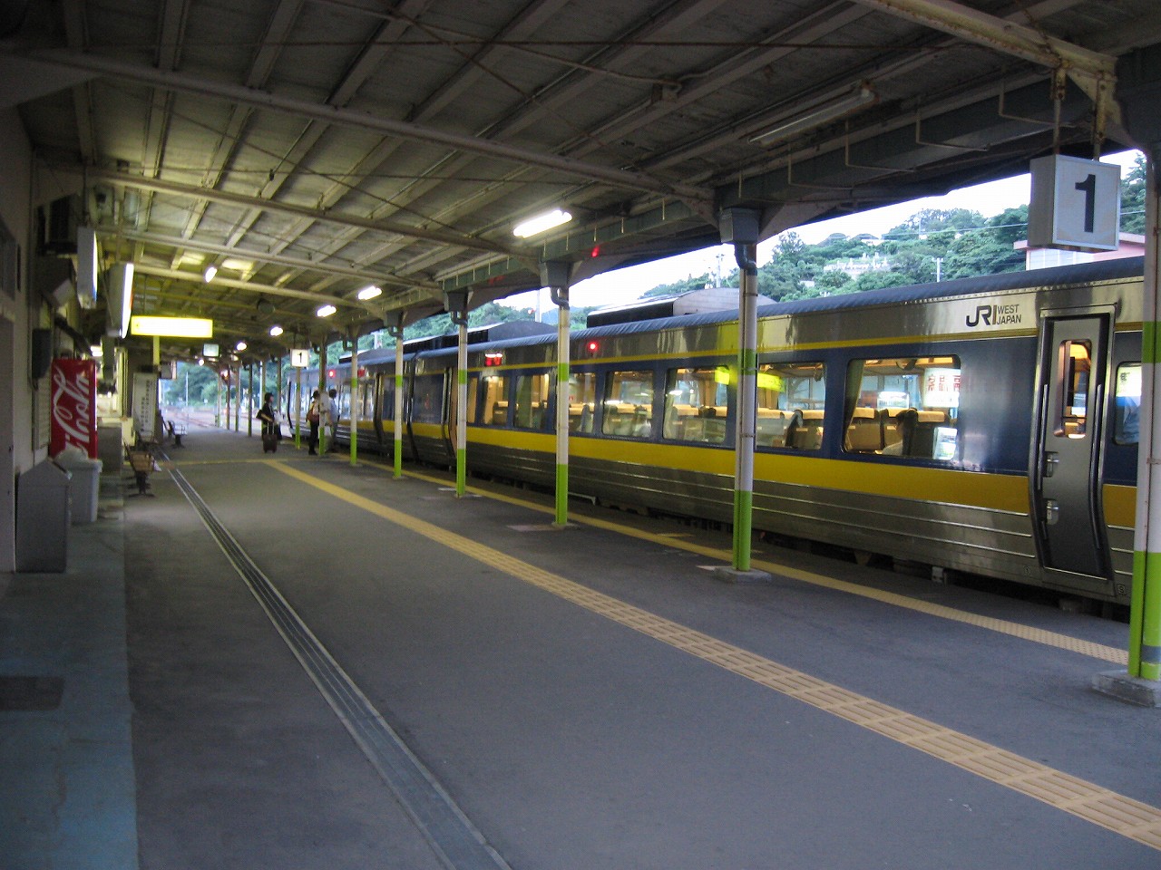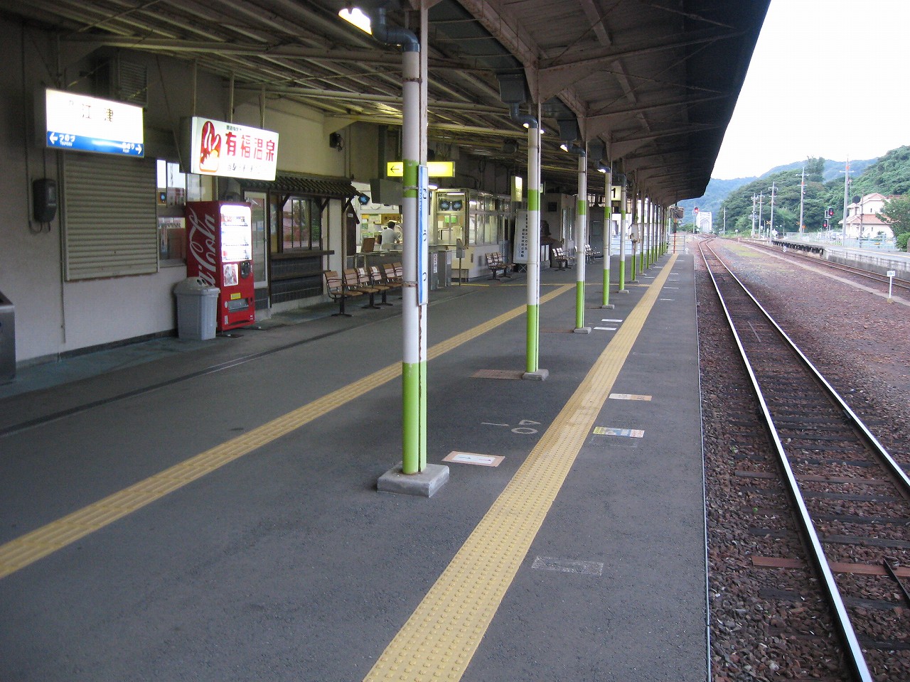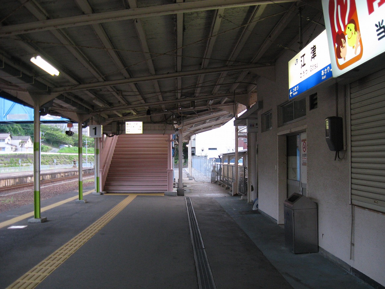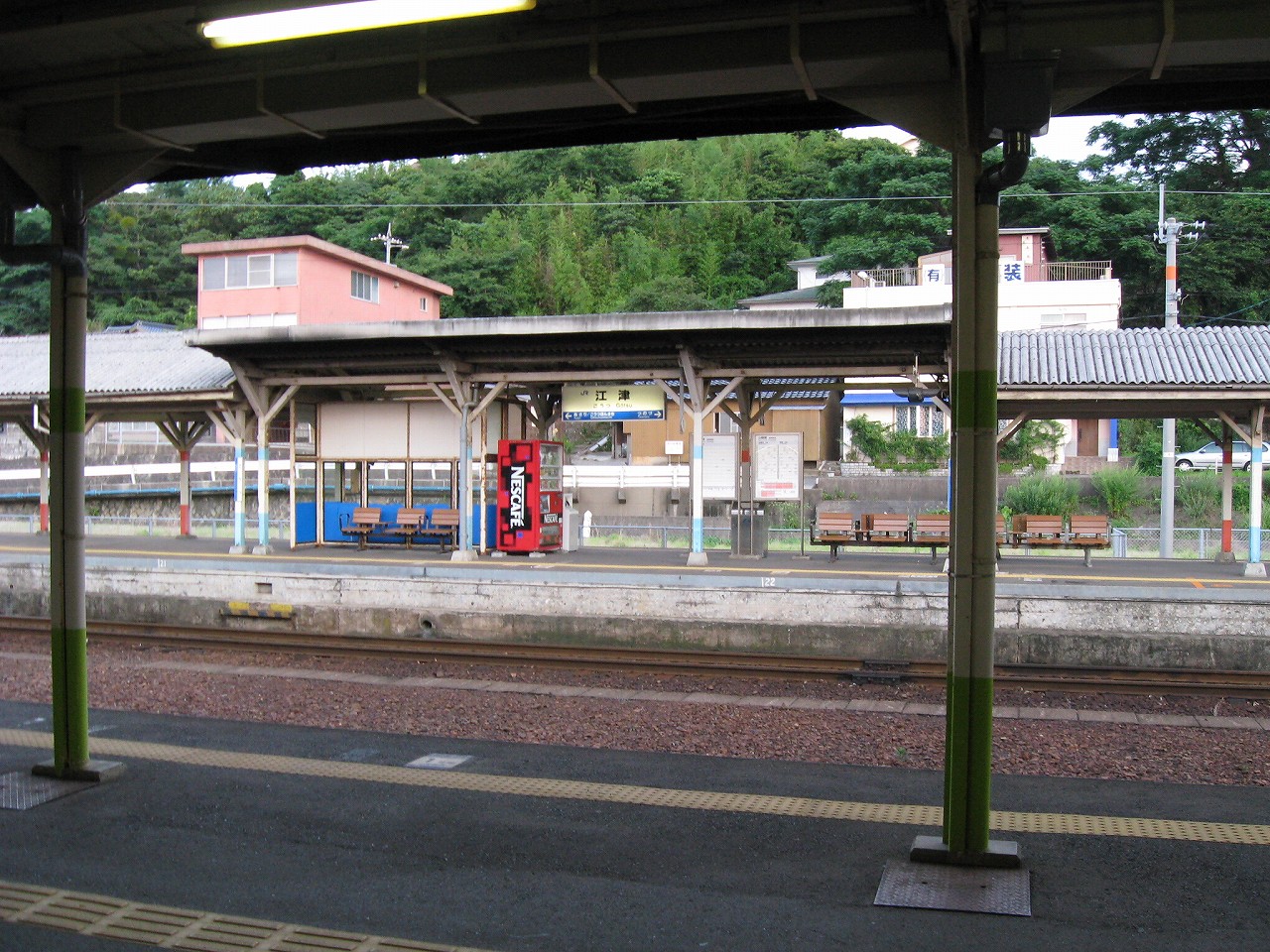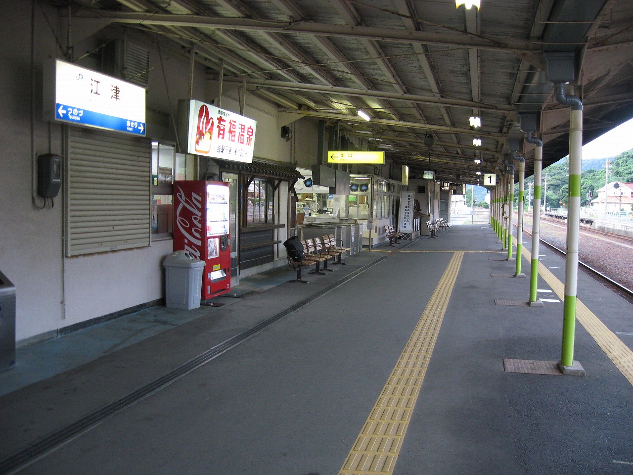 一時間後、江津駅着。三江線の列車は、このときは乗客は余りいなかった。もっと学生でいっぱいかと思っていたが…そういうスジもあったんだけどな。もう今日の昼に来訪した駅とはいえ、下車は初めてだったからやはり新鮮だった。それでまた少し旅情を回復する。