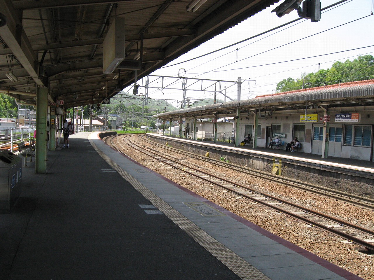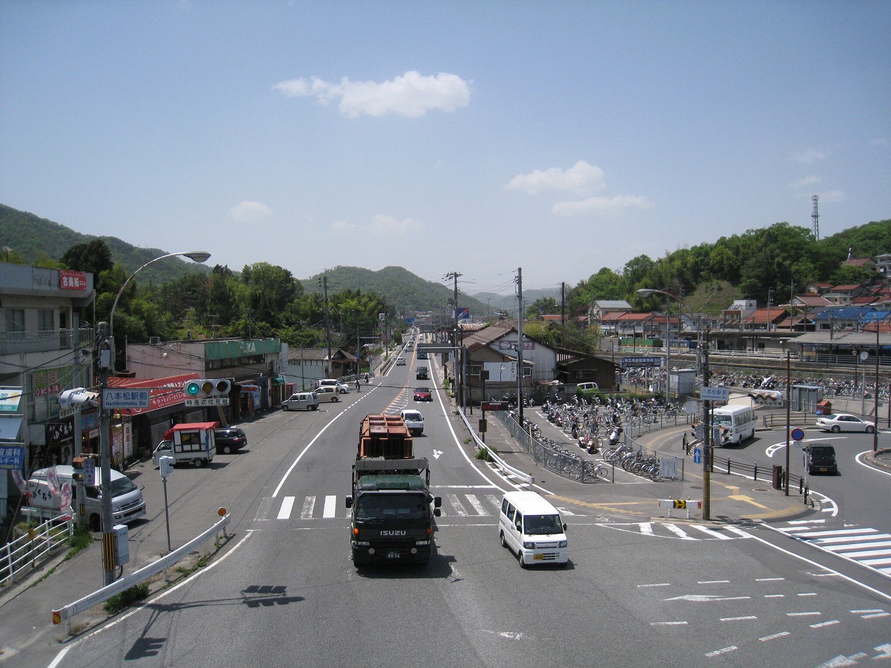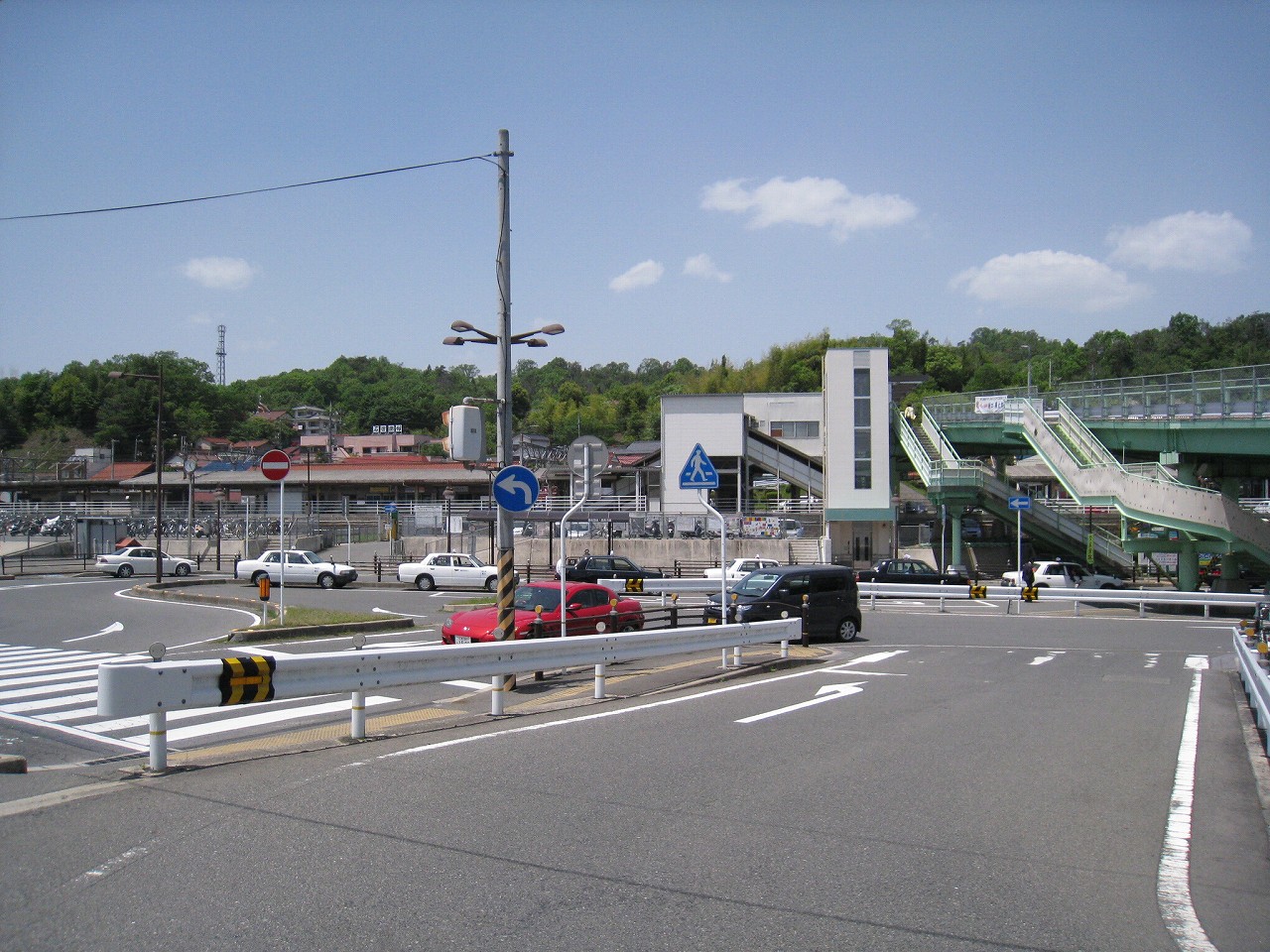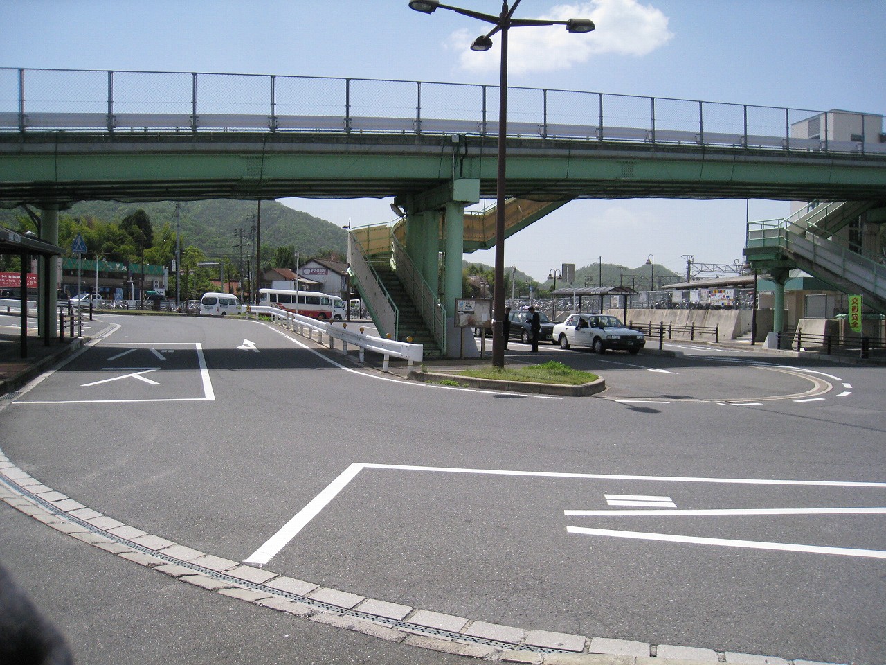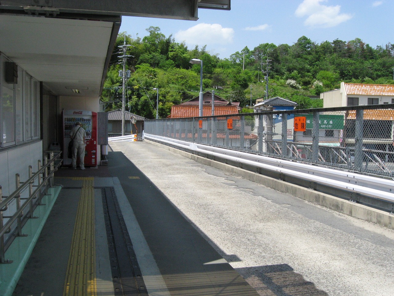 峠の手前のはずだが、列車はなんでもなさそうに停車し、意外にも多くの人たちと一緒に降りた。するととたんに緑の薫風に勢いよく煽られた。しばらしてとやっと静かになると、三つ山の屏風のような曾場ヶ城山が駅を見下ろしているのに気づく。N本末(N∈ℕ)という地名も、峠の手前らしい感じだ(こんな表記も、学生らしくてすきである)。けれど、ホームの裏手向こうにはタクシーだけが待つ壮大なロータリーと歩道橋が整備されているのが目に飛び込んでくる。遠くには旧国をトラックが走りぬき、山陽本線の風景コレクションとしてはここは印象的だし、悪くなかった。