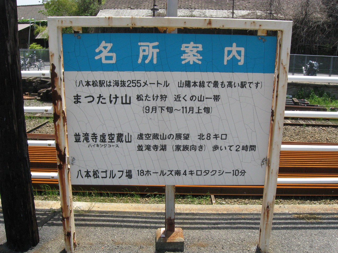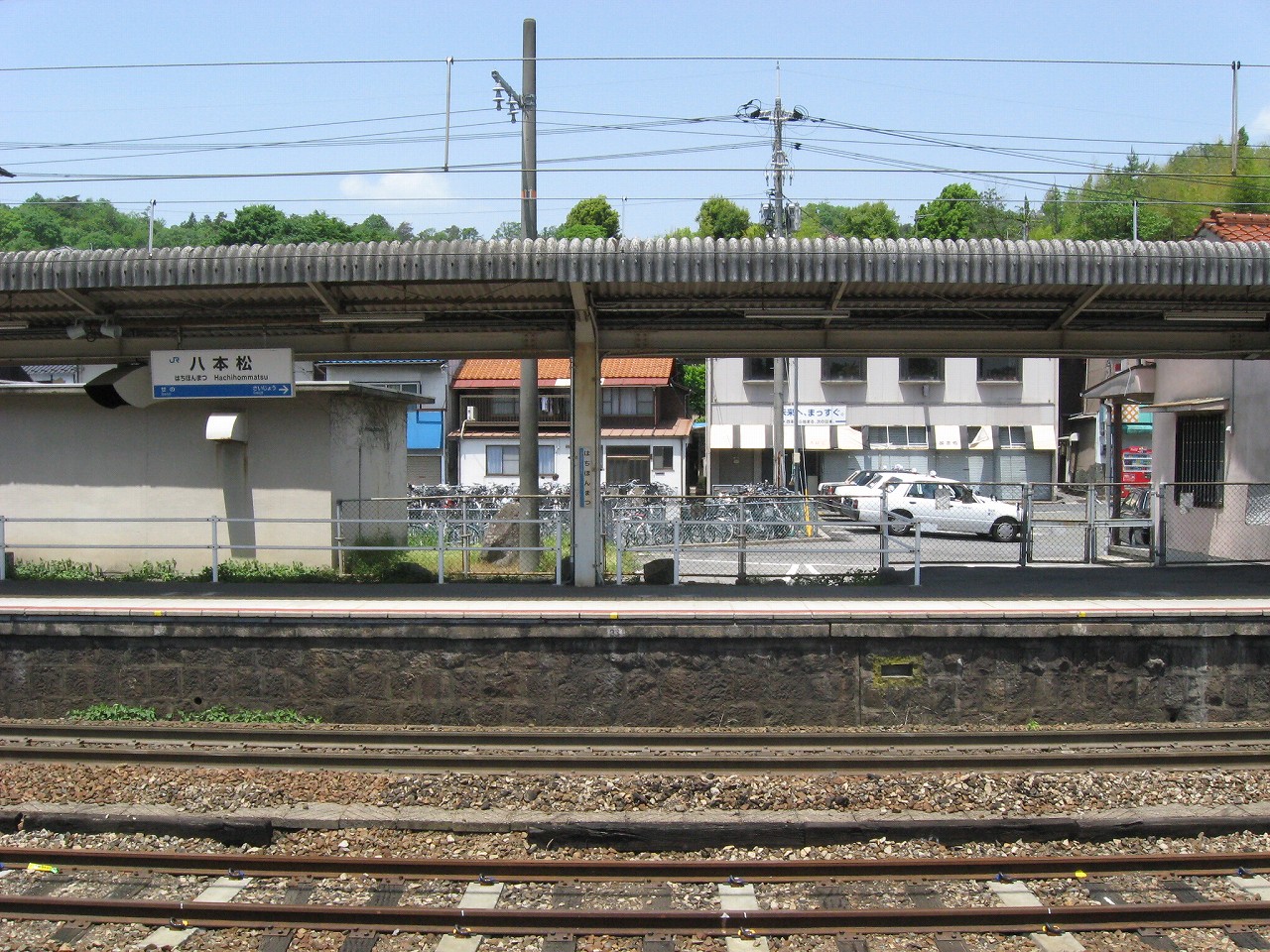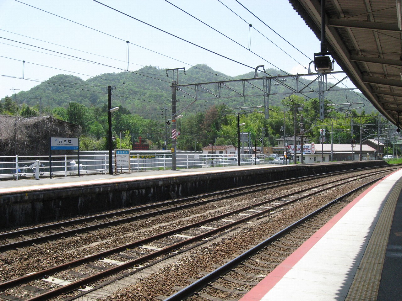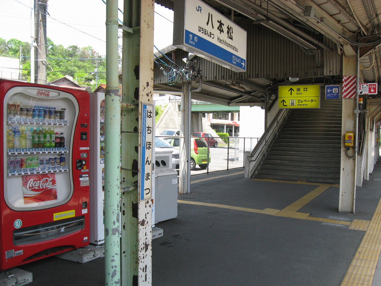 峠の手前のはずだが、列車はなんでもなさそうに停車し、意外にも多くの人たちと一緒に降りた。するととたんに緑の薫風に勢いよく煽られた。しばらしてとやっと静かになると、三つ山の屏風のような曾場ヶ城山が駅を見下ろしているのに気づく。N本末(N∈ℕ)という地名も、峠の手前らしい感じだ(こんな表記も、学生らしくてすきである)。けれど、ホームの裏手向こうにはタクシーだけが待つ壮大なロータリーと歩道橋が整備されているのが目に飛び込んでくる。遠くには旧国をトラックが走りぬき、山陽本線の風景コレクションとしてはここは印象的だし、悪くなかった。