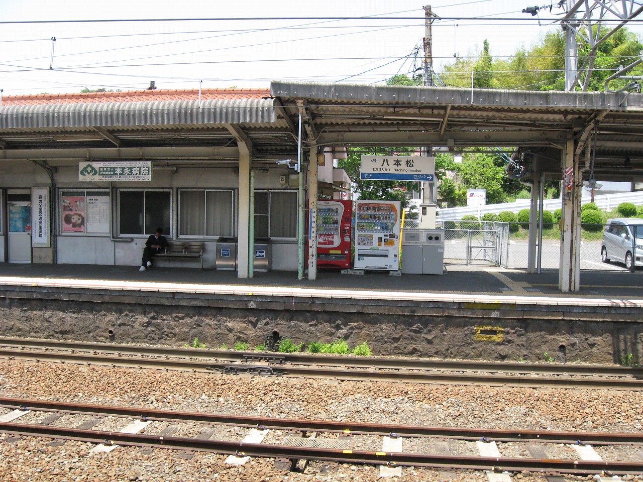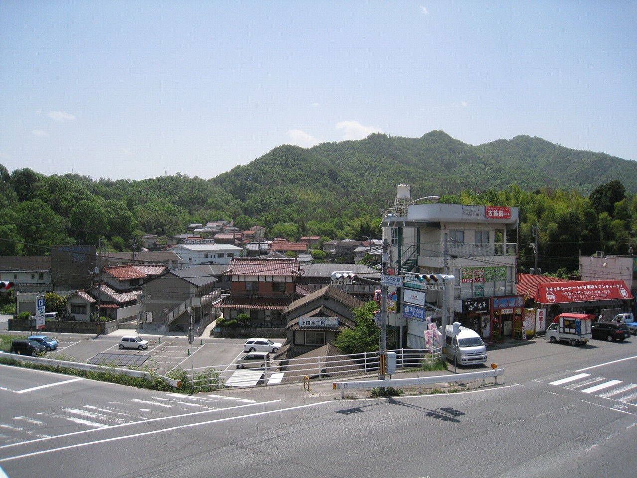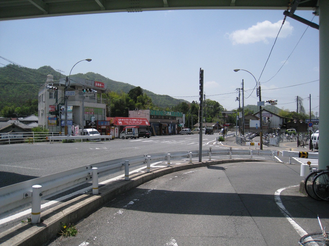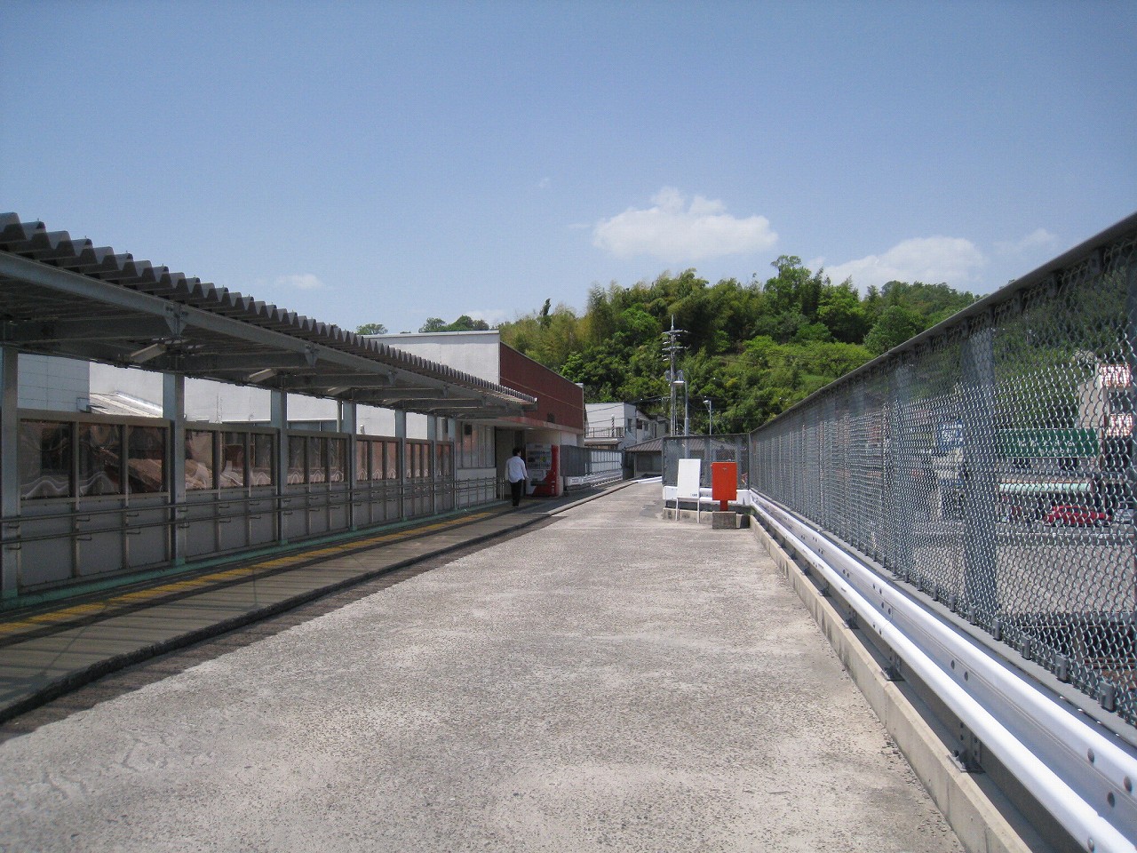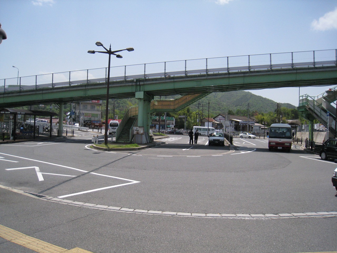 峠の手前のはずだが、列車はなんでもなさそうに停車し、意外にも多くの人たちと一緒に降りた。するととたんに緑の薫風に勢いよく煽られた。しばらしてとやっと静かになると、三つ山の屏風のような曾場ヶ城山が駅を見下ろしているのに気づく。N本末(N∈ℕ)という地名も、峠の手前らしい感じだ(こんな表記も、学生らしくてすきである)。けれど、ホームの裏手向こうにはタクシーだけが待つ壮大なロータリーと歩道橋が整備されているのが目に飛び込んでくる。遠くには旧国をトラックが走りぬき、山陽本線の風景コレクションとしてはここは印象的だし、悪くなかった。