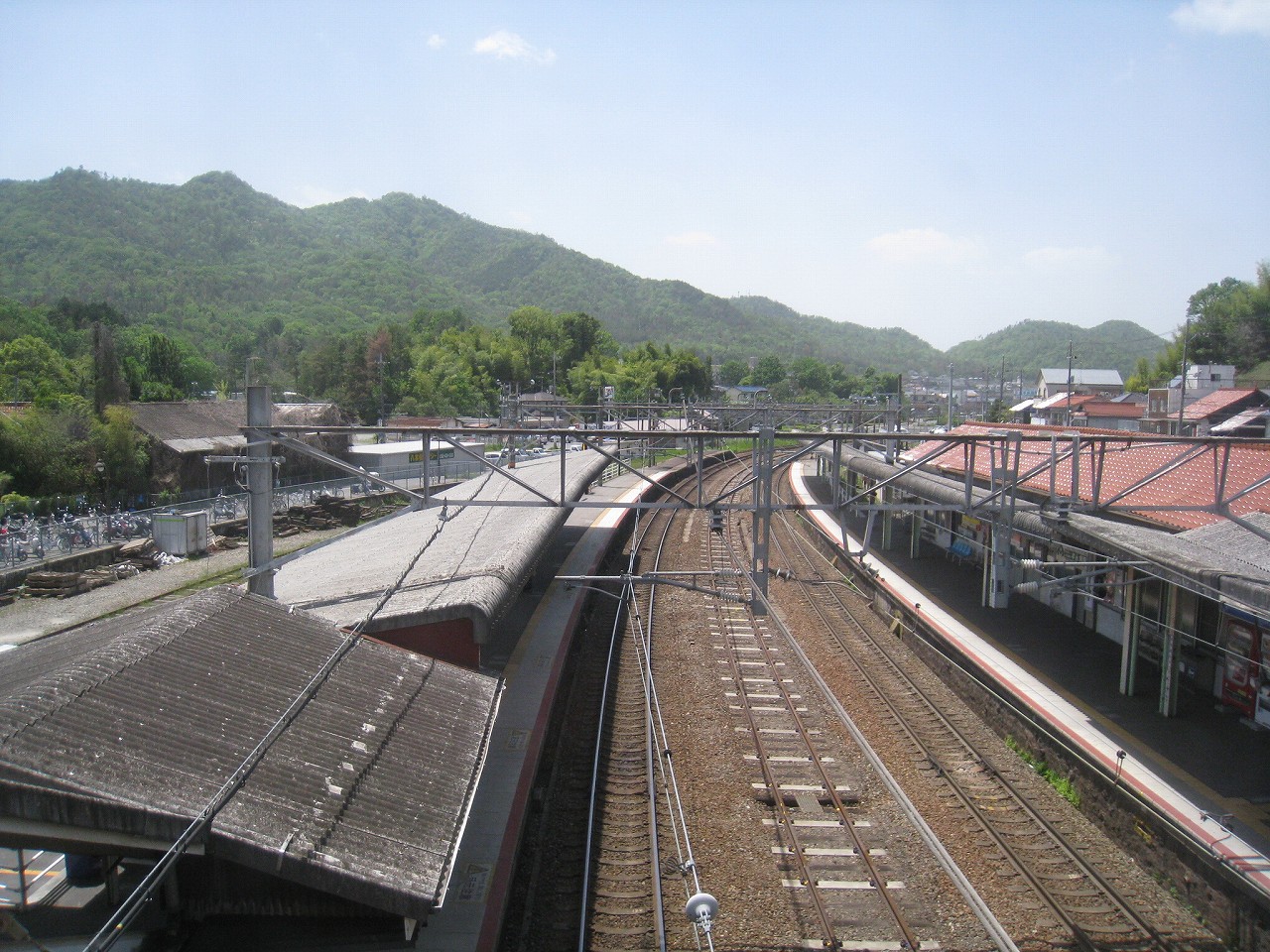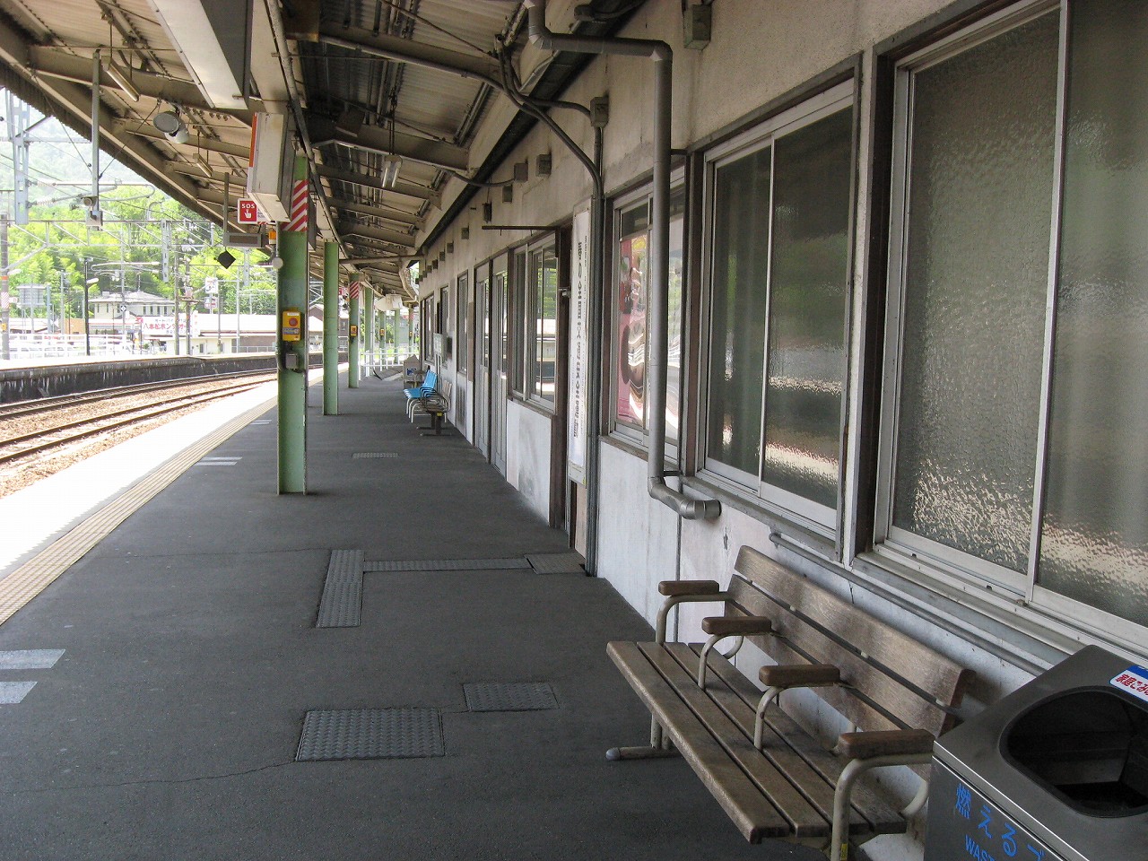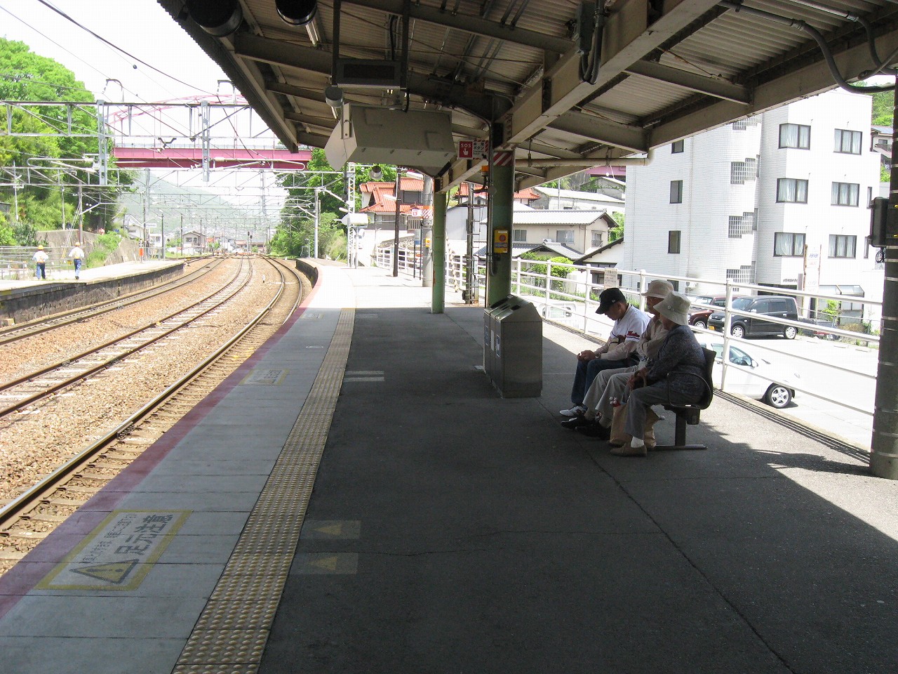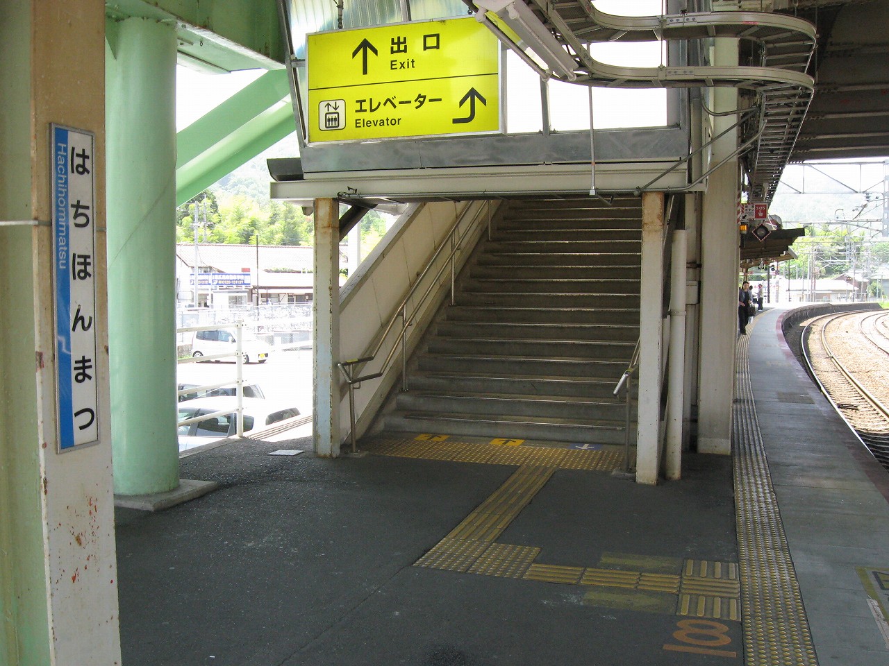 峠の手前のはずだが、列車はなんでもなさそうに停車し、意外にも多くの人たちと一緒に降りた。するととたんに緑の薫風に勢いよく煽られた。しばらしてとやっと静かになると、三つ山の屏風のような曾場ヶ城山が駅を見下ろしているのに気づく。N本末(N∈ℕ)という地名も、峠の手前らしい感じだ(こんな表記も、学生らしくてすきである)。けれど、ホームの裏手向こうにはタクシーだけが待つ壮大なロータリーと歩道橋が整備されているのが目に飛び込んでくる。遠くには旧国をトラックが走りぬき、山陽本線の風景コレクションとしてはここは印象的だし、悪くなかった。