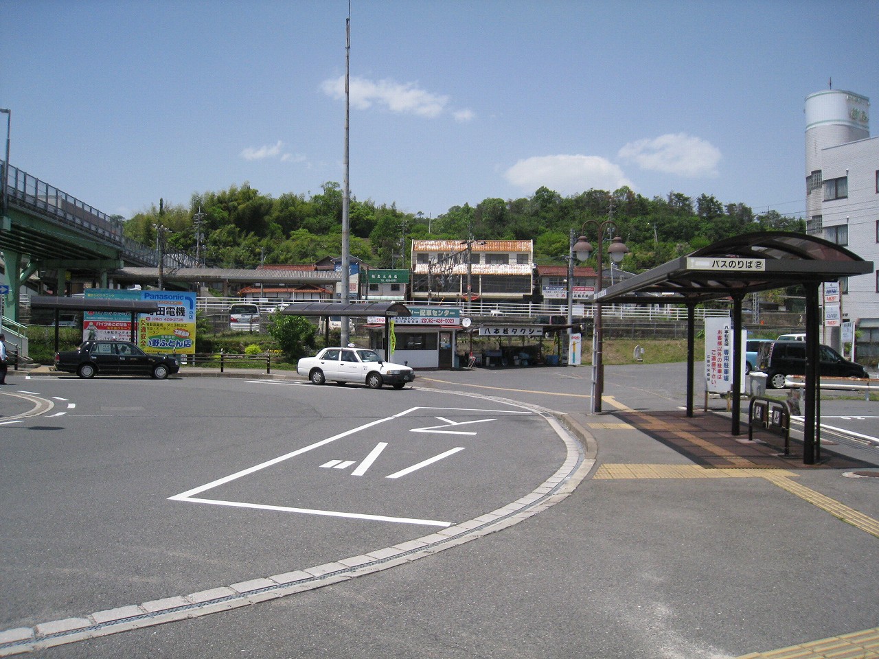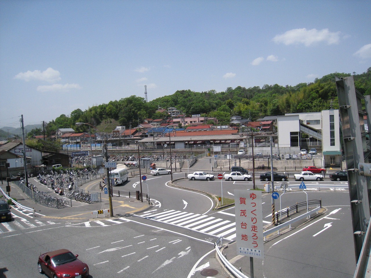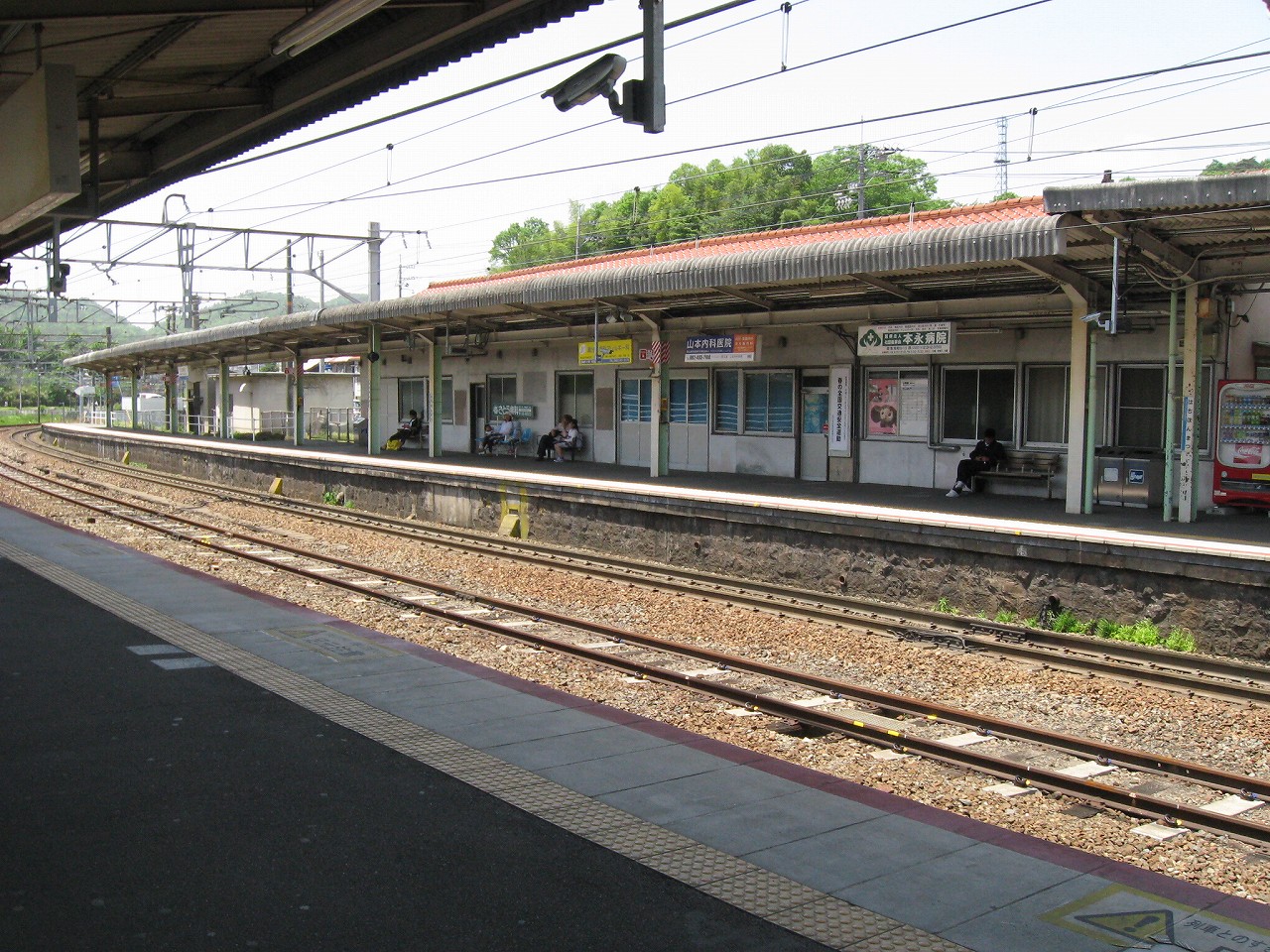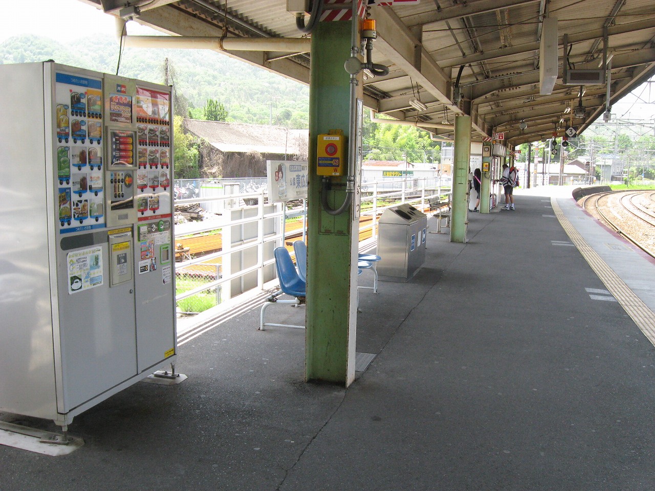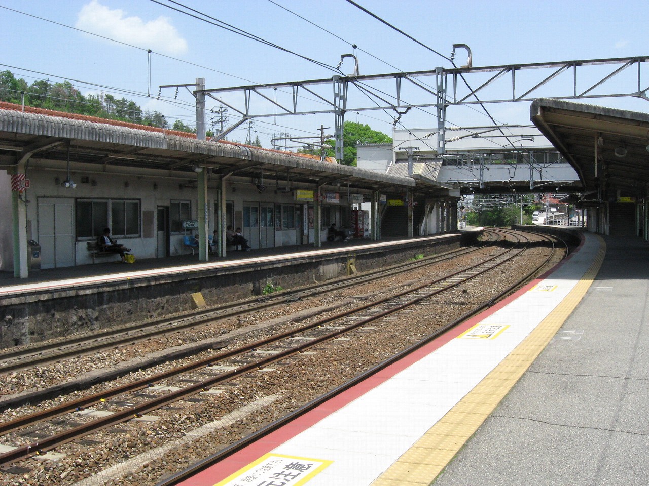 峠の手前のはずだが、列車はなんでもなさそうに停車し、意外にも多くの人たちと一緒に降りた。するととたんに緑の薫風に勢いよく煽られた。しばらしてとやっと静かになると、三つ山の屏風のような曾場ヶ城山が駅を見下ろしているのに気づく。N本末(N∈ℕ)という地名も、峠の手前らしい感じだ(こんな表記も、学生らしくてすきである)。けれど、ホームの裏手向こうにはタクシーだけが待つ壮大なロータリーと歩道橋が整備されているのが目に飛び込んでくる。遠くには旧国をトラックが走りぬき、山陽本線の風景コレクションとしてはここは印象的だし、悪くなかった。