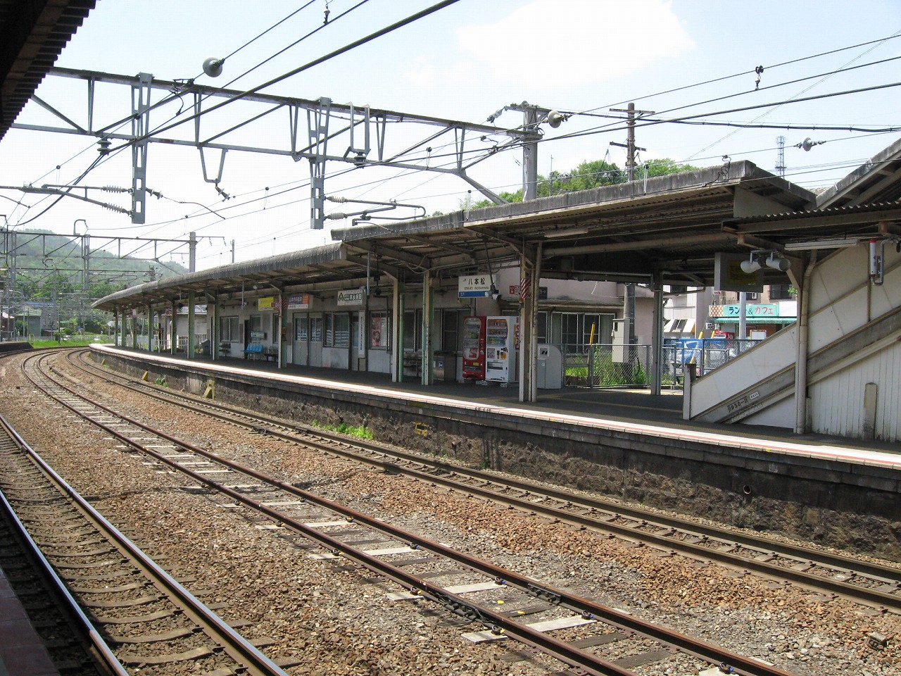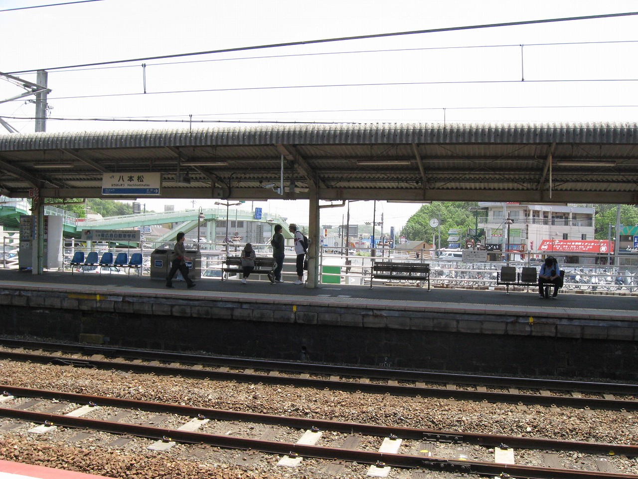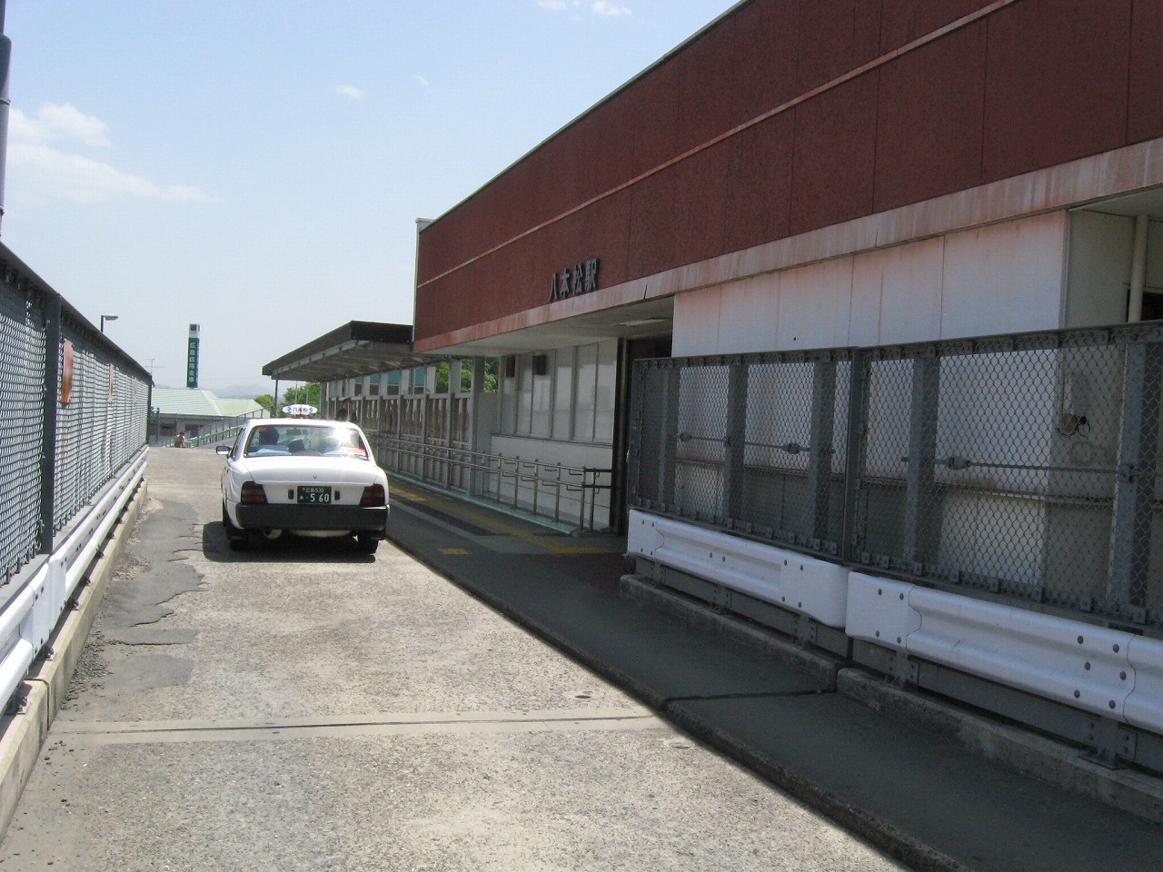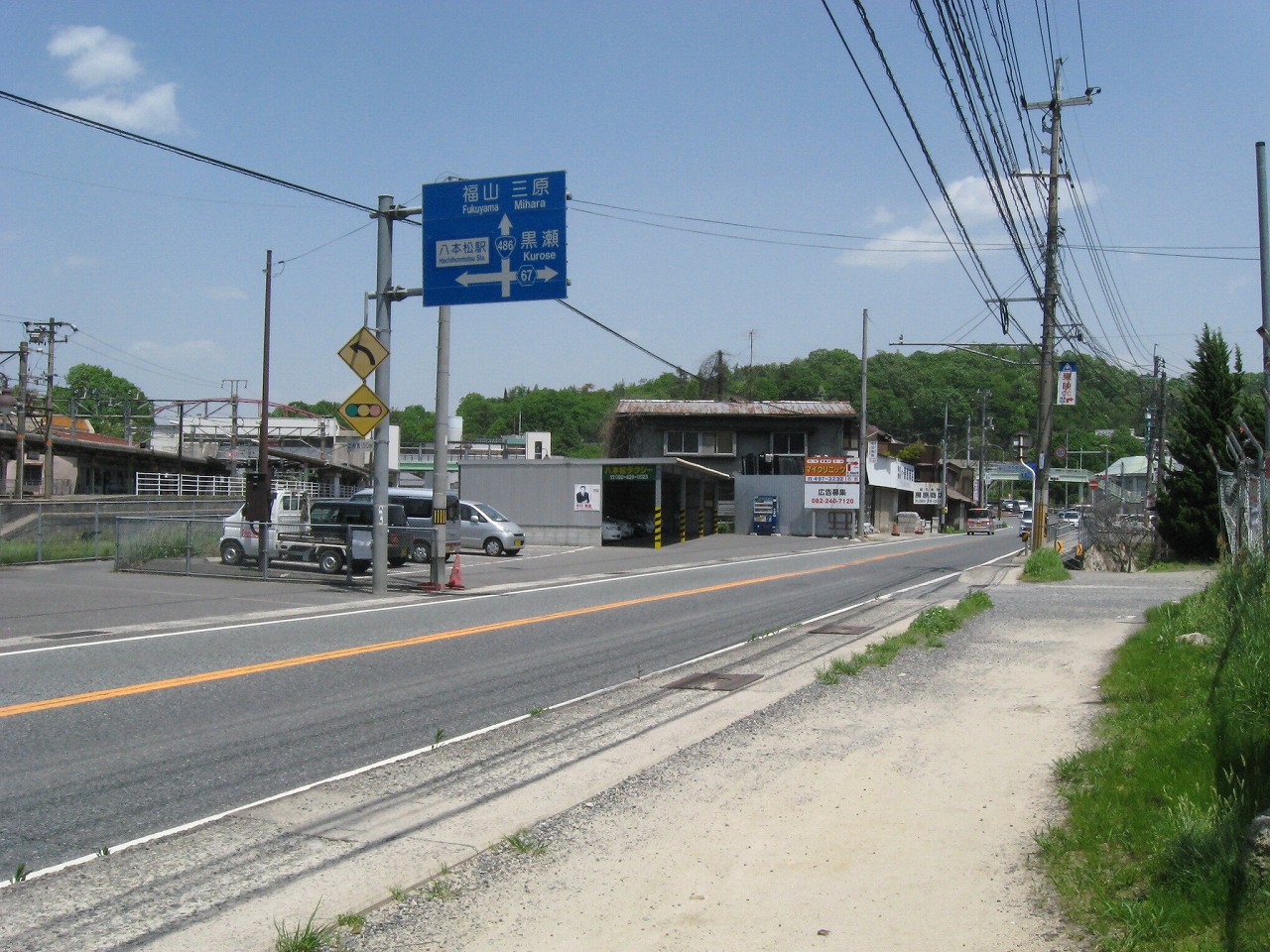 峠の手前のはずだが、列車はなんでもなさそうに停車し、意外にも多くの人たちと一緒に降りた。するととたんに緑の薫風に勢いよく煽られた。しばらしてとやっと静かになると、三つ山の屏風のような曾場ヶ城山が駅を見下ろしているのに気づく。N本末(N∈ℕ)という地名も、峠の手前らしい感じだ(こんな表記も、学生らしくてすきである)。けれど、ホームの裏手向こうにはタクシーだけが待つ壮大なロータリーと歩道橋が整備されているのが目に飛び込んでくる。遠くには旧国をトラックが走りぬき、山陽本線の風景コレクションとしてはここは印象的だし、悪くなかった。
