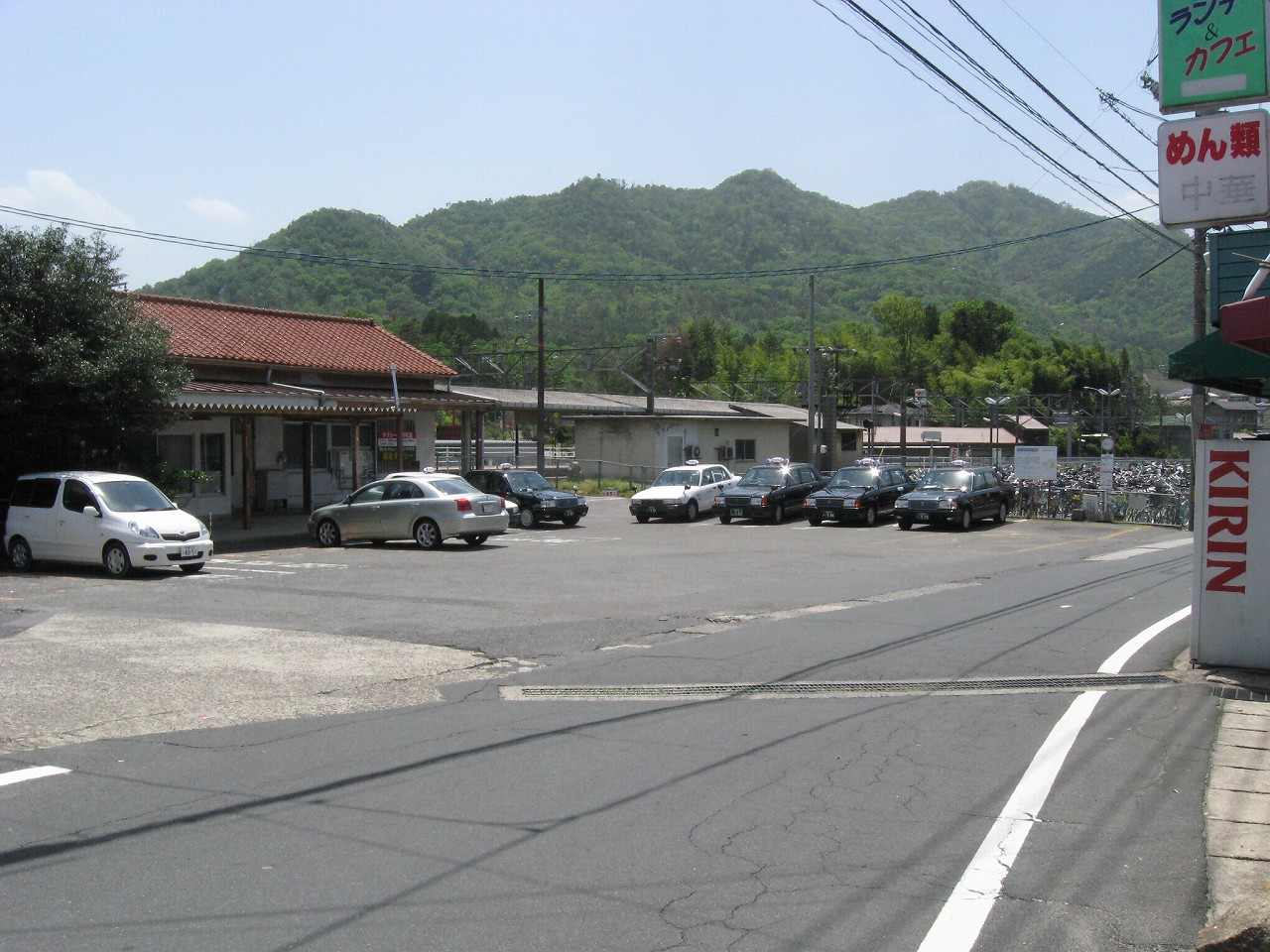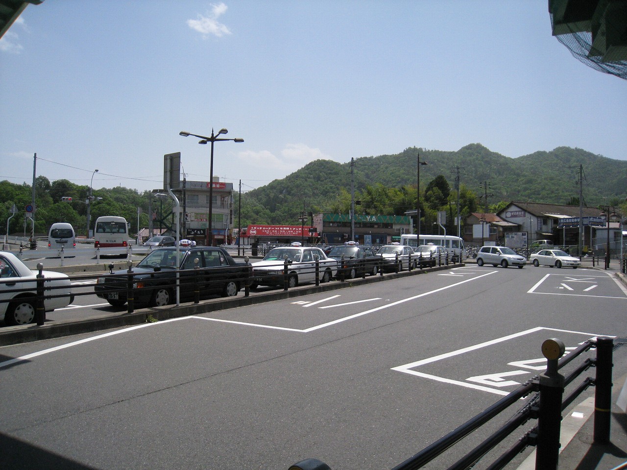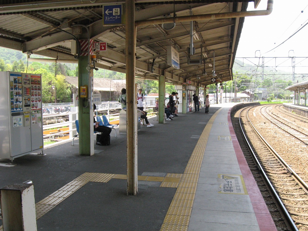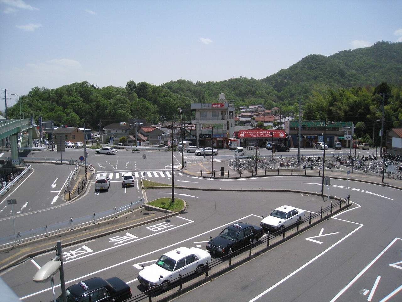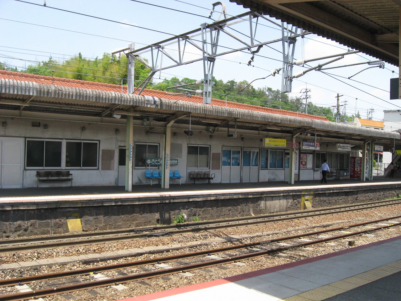 峠の手前のはずだが、列車はなんでもなさそうに停車し、意外にも多くの人たちと一緒に降りた。するととたんに緑の薫風に勢いよく煽られた。しばらしてとやっと静かになると、三つ山の屏風のような曾場ヶ城山が駅を見下ろしているのに気づく。N本末(N∈ℕ)という地名も、峠の手前らしい感じだ(こんな表記も、学生らしくてすきである)。けれど、ホームの裏手向こうにはタクシーだけが待つ壮大なロータリーと歩道橋が整備されているのが目に飛び込んでくる。遠くには旧国をトラックが走りぬき、山陽本線の風景コレクションとしてはここは印象的だし、悪くなかった。