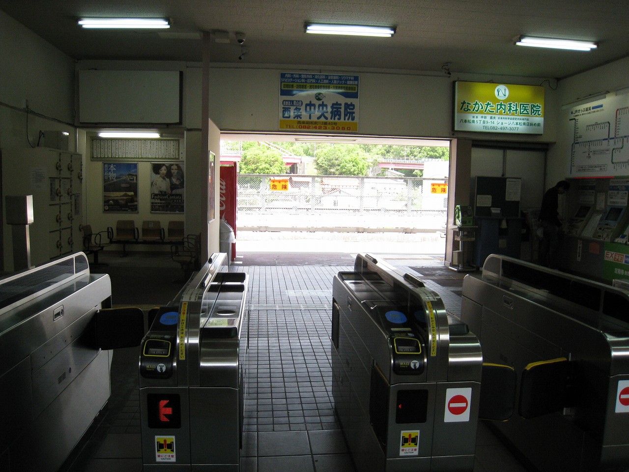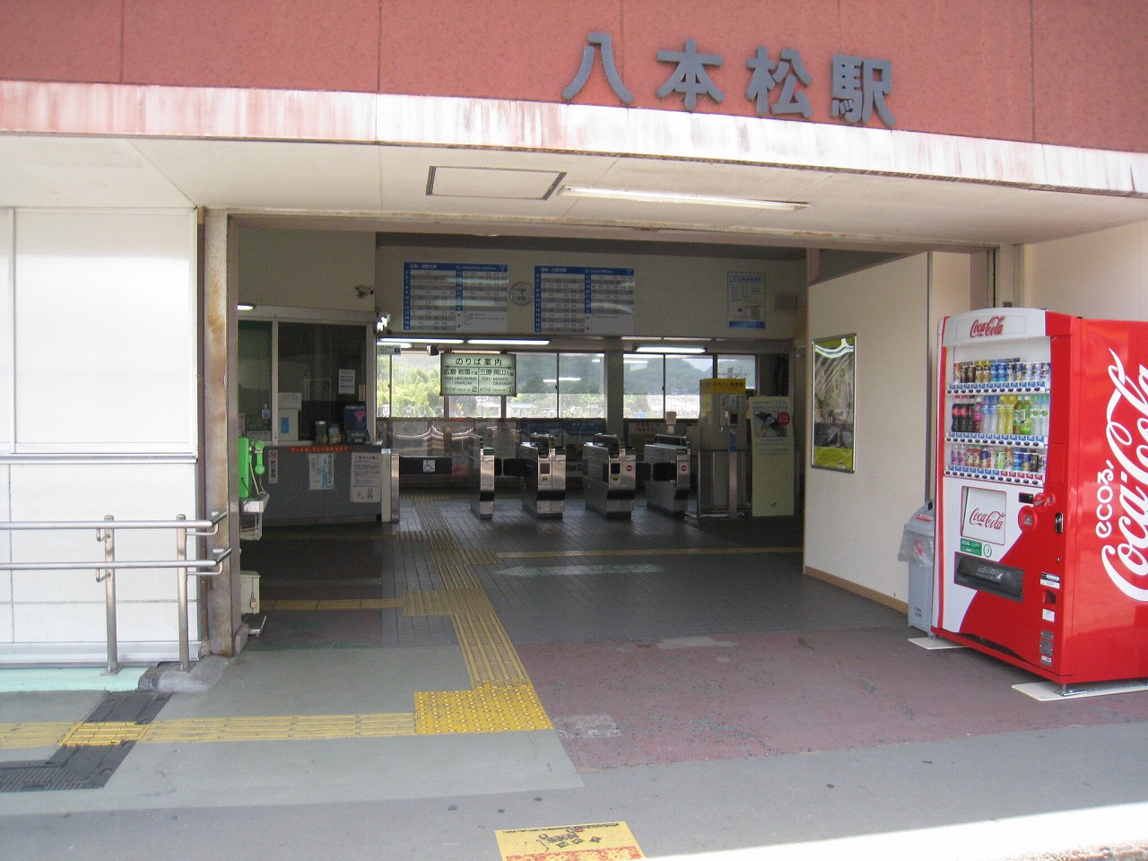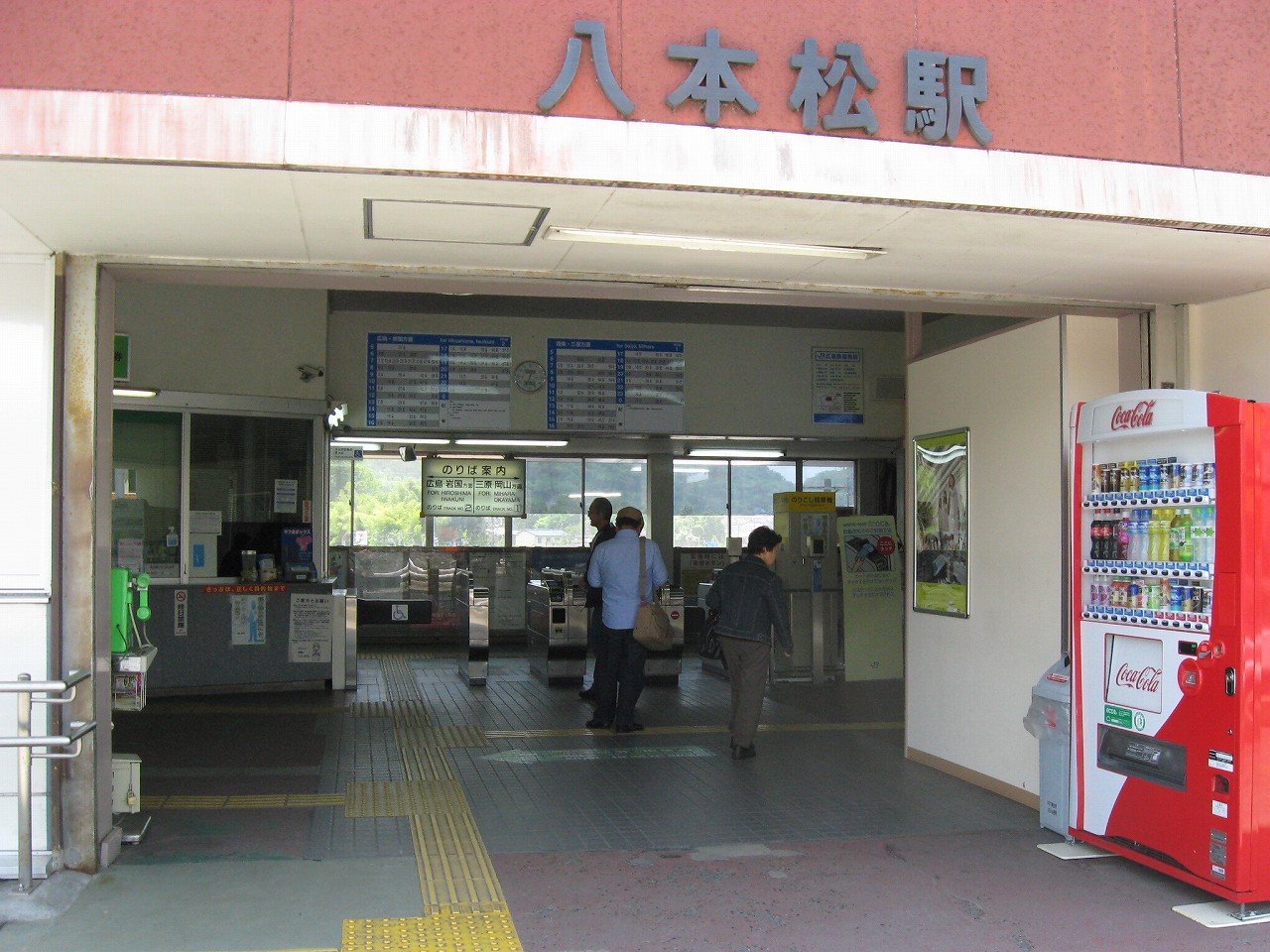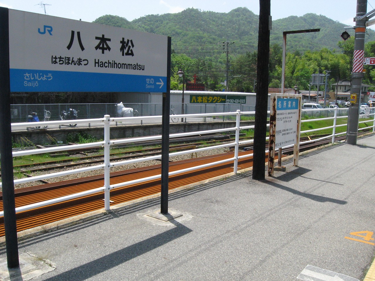 駅を出て誰もが驚くだろう。橋上駅で橋上のまま放り出されて、そこが或る橋の上の一本道なのだから! なんぞこれ? って、たいそうに歓び勇みながら、僕はきょろきょろした。振り返ると、確かに八本松駅、と掲出されてるじゃないか。そこらへんは臙脂色に塗られていて、石州瓦の抽象? よくわからないが、忘れられない駅である。
