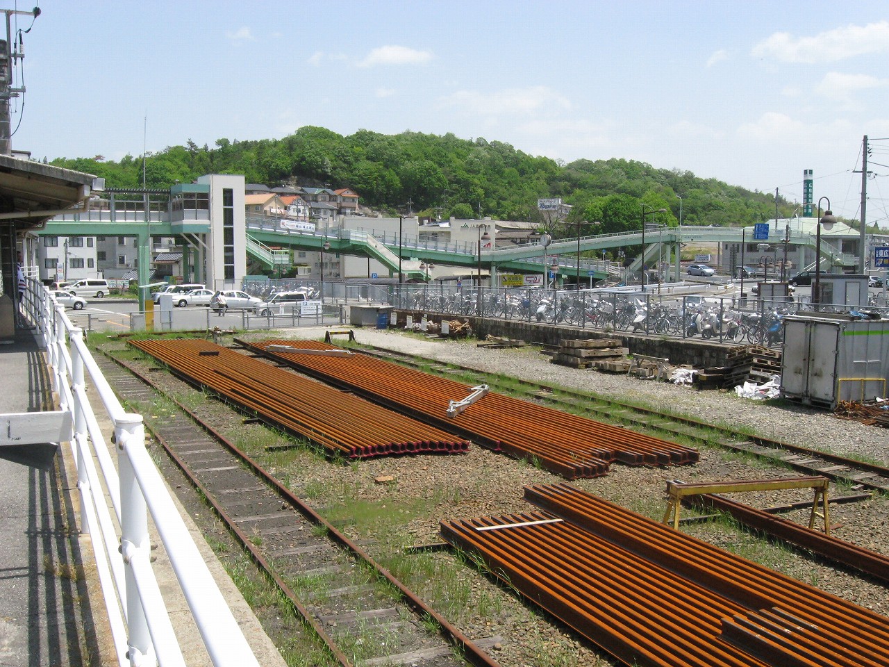 緑のさわやかな香りのすがすがしい青空の中たまたま降りた山陽本線の珍駅として、僕はその後この駅のことを忘れることはなかった。もっとまともな橋上駅にしなかったのは、いろいろ理由がありそうだけど、規格や統一より、それぞれの地域の特性と時代を考えてできた感じがしている。この60年代の橋上化は、南側が高度経済成長期の急激な宅地開発に見舞われたからとのことだけど、そのかつてのバイタリティーみたいなものは、こうして輻輳している時空間とともに、いまもこの駅と駅周辺に、やはり静かに宿っている。