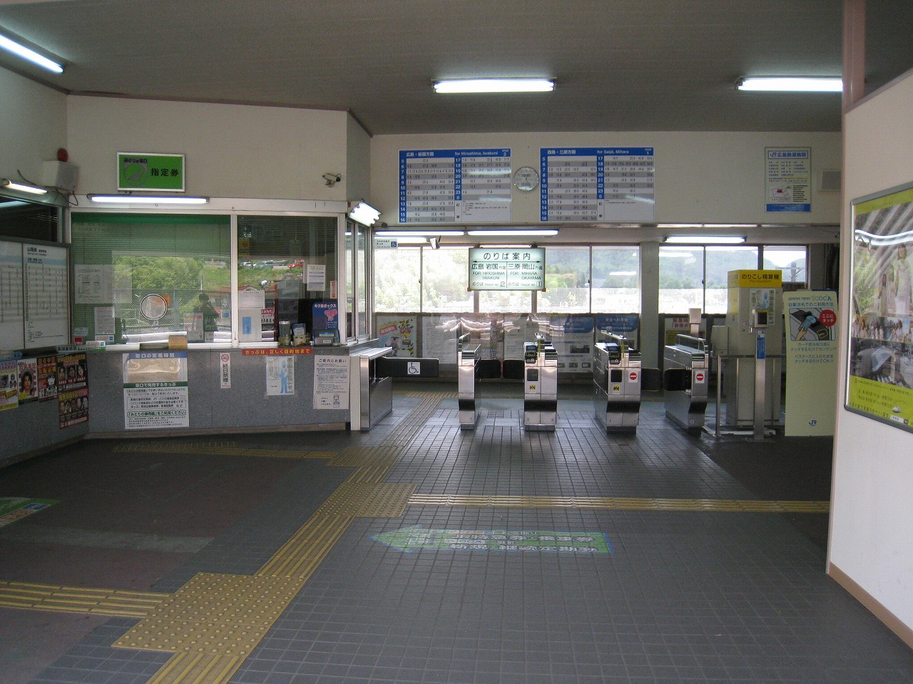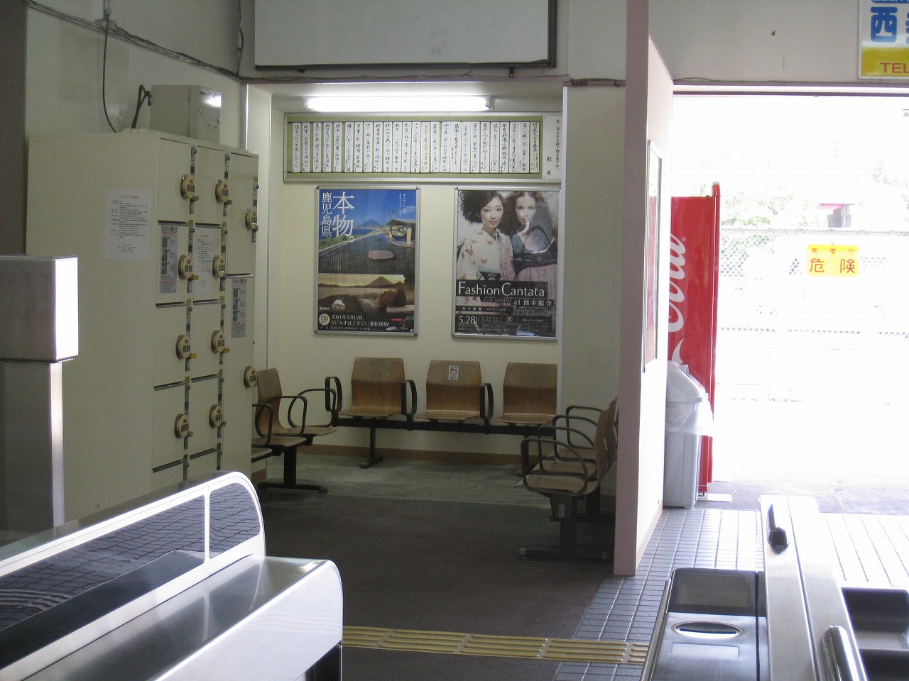 実はここからすぐのとろこに米軍上川弾薬庫がある。旧帝国海軍から、敗戦後米軍に接収されて今に至るというわけ。とうぜん、戦前はそことの貨物輸送もされていた。原爆投下の広島のほど近いところに、米軍施設があるというのもなんともいたましいが、けっきょくわが国の国民としては軍をみずから扱いきることに対する自信を失ってしまったままだ。僕はふと、駅舎の待合室にあった俳句と短歌のいくつもの短冊を思い出し、投下後もやはり文化は残ったということを、感慨深く思った。