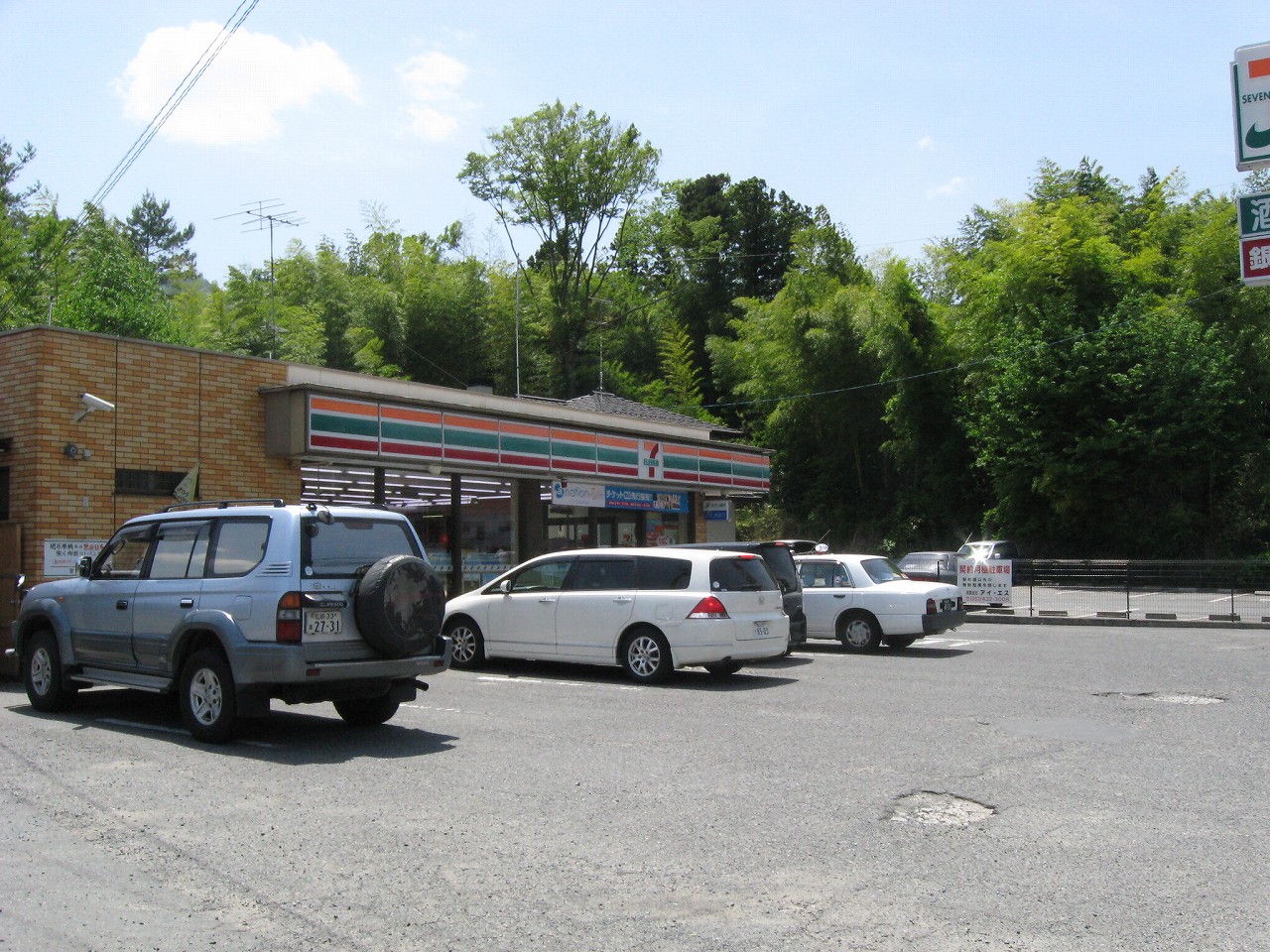 駅前はあまりにおもしろく、僕はしばらく峠の方に国道を歩くと、古いセブンイレブンがみつかり、飢えていた僕は歩速を緩めずそのまま入っていった。古めかしいドアチャイムが鳴り響く。かすかに冷房が効いた店内では、広島のじーさんがセブンの法被を着てしおらしく弁当を並べていて、グローバルな波もここまで来たか、なんて思う。とにかく僕はそこで茶とカラアゲ串を買い、食いながらも店を後にした。