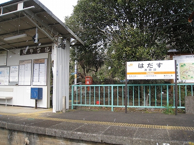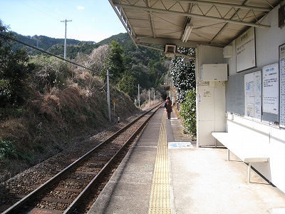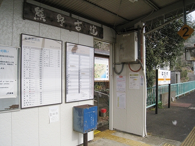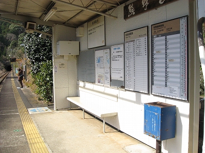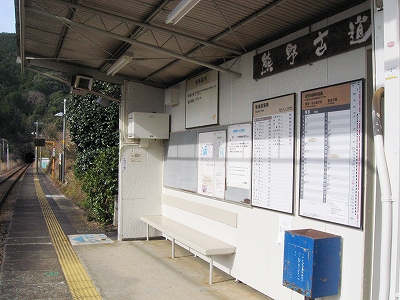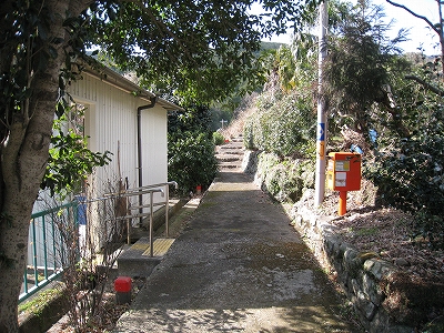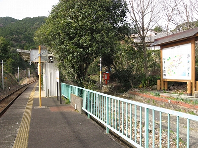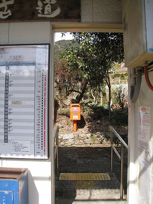 もっとも驚くのは、ホームから細道に出たすぐところにポストがあったこと。ここまで回収しに来てくれるのだ。これは逆に言えば、ここ以上に中心的な場はもうないかもしれないとの推理も可能だということだった。熊野古道の案内板もあるが、目に入らない。どうせ私はそういう捉え方をしていないのだから。集落があり、僥倖として鉄道が走り、そしてさらに駅まである、そういう捉え方だった。