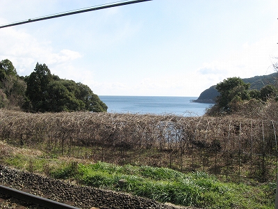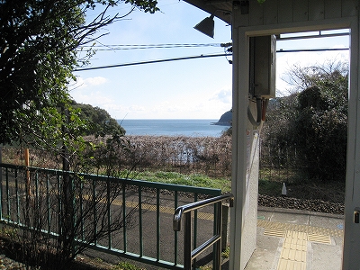 ため息きながら拒絶するように手を振り、これはまたすごいところに来たな、と。車が直接入ってて来られない駅だ。降りたところは地図にも載らないような小尾根を切り通していた。海は、と、端にプラットホームを歩くと、入り江で、その向うは遥けく縹渺としていている。それは淡い憧れで、哀しく、どこともつかない様相だった。はたしてその海が実際に特定のものとして存在するのかは怪しかった。たとえばほかのどこかから見た海はたしかにそれは枯木灘、熊野灘と言いえそうでも、ここのは次見たときはまったく違うものか、別の人が同じものを見ることは決してないようなものの思われ、引き込まれた。きれいとか爽快というのではなく、ほんにとある海辺という趣だった。それだけに遥かなるものを感じ、少し胸が苦しくなった。