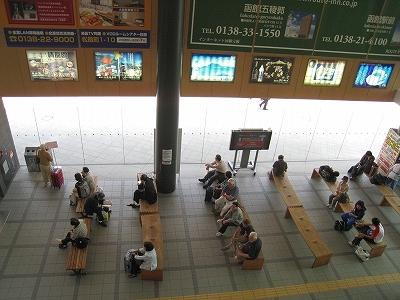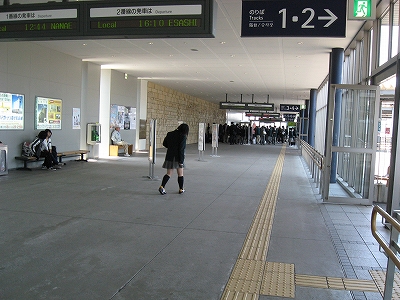 特急列車が着くたびに粘性のある液体のごとく大勢の観光客が吐き出された。地元の人は地味な服を着て隅の方に腰掛けているだけだった。のりばはいずれも鼠色の鉄鋼の並ぶ、黒い舗装というものだったが、いまだに古い屋台で駅弁を売っていて、発車前にはたくさんの人の手に渡っていく。そして汽車が出ると、駅弁売りはさっきの生き生きしていたことなど嘘だったかのような表情で店じまいをする。