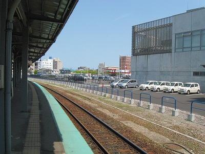 緩やかなスロープになっている。函館駅からの旅はいつもこの光景から。