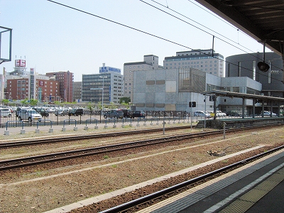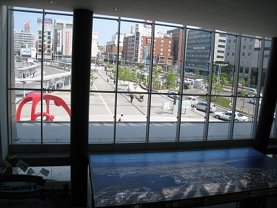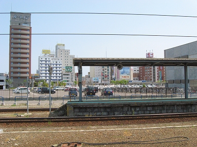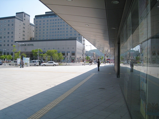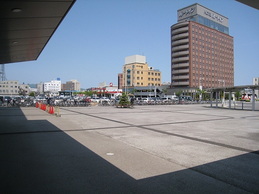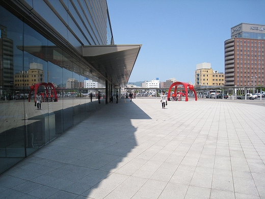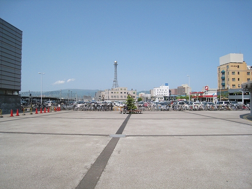 広大な駅前越しに見た函館駅。6.