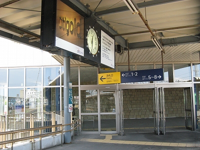 ここはどのホームも時計が横向きに出ていた。