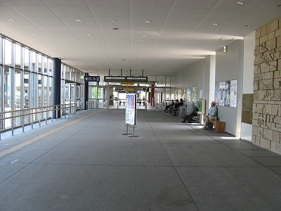 回廊コンコースが駅舎に接続する部分まですっきりと見通せた。