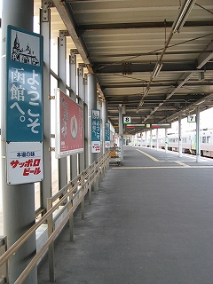 函館駅のホームは少しも特別な装いをせず、塗りたての鉄骨が新しい、けれども何より潮風がこんなに近い都市駅ということに、旅情が横溢した。いくつもあるサッポロビールの「ようこそ函館へ」の琺瑯引きのプレートには、確かに迎え入れられている感じがして、そんなものに、まごころを感じていた。