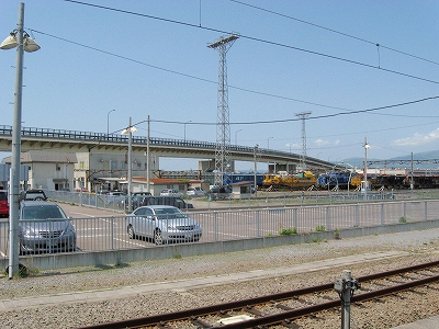 ともえ大橋と駐車場。ここはパーク&トレインの立体駐車場で、