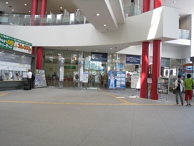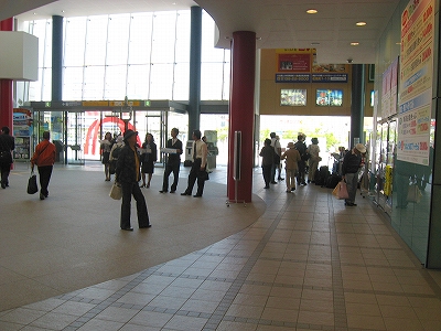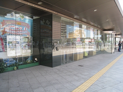 自慢のガラス面は朝市から駅を歩く人に見えるようになっていた。