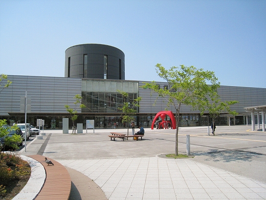 駅を漁師の網を象ったオブジェと共に。