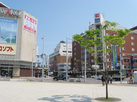 地方百貨店WAKO前にて。