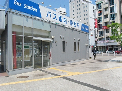 バスの待合所。外観は一見仮設に見えた。