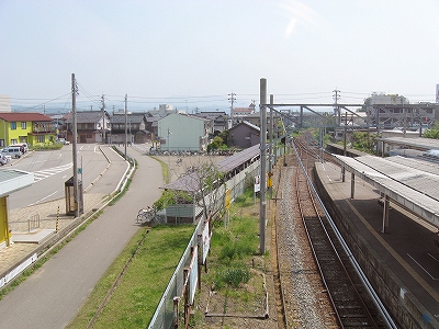 三叉路から駅を覗いて。