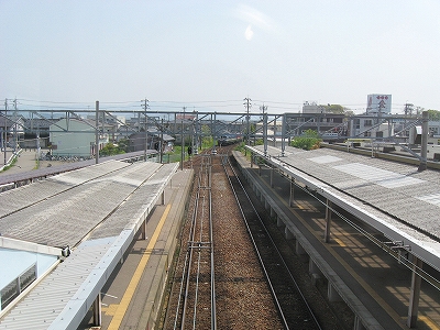 島式ホーム階段より津幡方の様子。