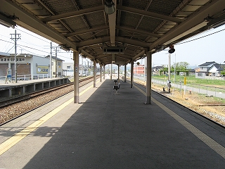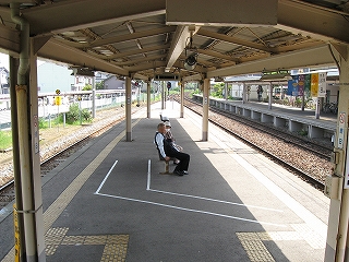 もっと主要駅らしいのを期待していたが、案外いかめしくなかった駅構内だった羽咋も下車し終え、この日は、後はもう小さな駅ばかりになった。光差す屋根に覆われた改札つきホームでは、10人ほどの人が待っていて、お昼にしてはまずまず多い方だと思えた。本日下り4本目の列車に乗車する。予想とたがい小さくても惹かれる駅が現れることを願って。