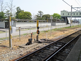 右側端の線路は本線にもポイントで繋がっているが、基本的には直進した先の車庫に至るもののようだ。