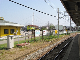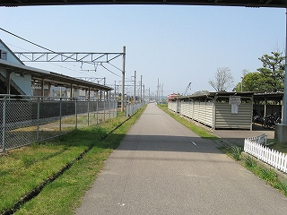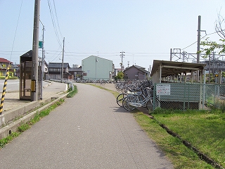 駅裏は静かで、新設の裏口駅舎の脇は、つつじなのにひっそりと咲き、休み場のようになっているところがあった。跨線橋が線路のほかに細道一本を跨いで下りてきていたので、なぜ無駄に跨線橋を延ばしたのだろう、側線跡か、と思ったが、北陸鉄道能登線の旧線跡だそうだ。何かと旧線跡というのは、違和感を放っていて、推理されたがっている。 さっきのつつじの休み場もサイクリングロードの休憩所かもしれない。