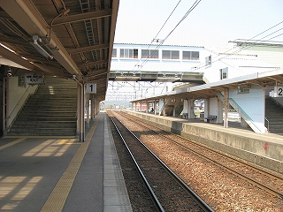 2番線のりばを上り方に。ホームの柱は跨線橋を支えるもの。