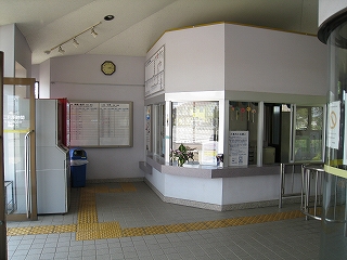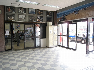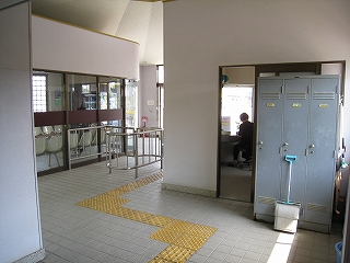 待合室と駅舎出入口。コインロッカーあり。