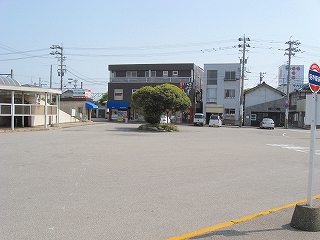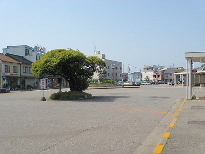 津幡方の駅前広場。このように敷地がかなり広いが、ここが神社だったところ。